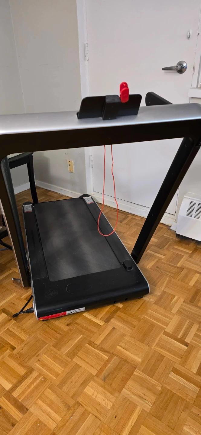 A Proform treadmill is available. It's a compact model with a running deck and handrails. It comes with a phone holder and safety clip.used in good condition pickup only