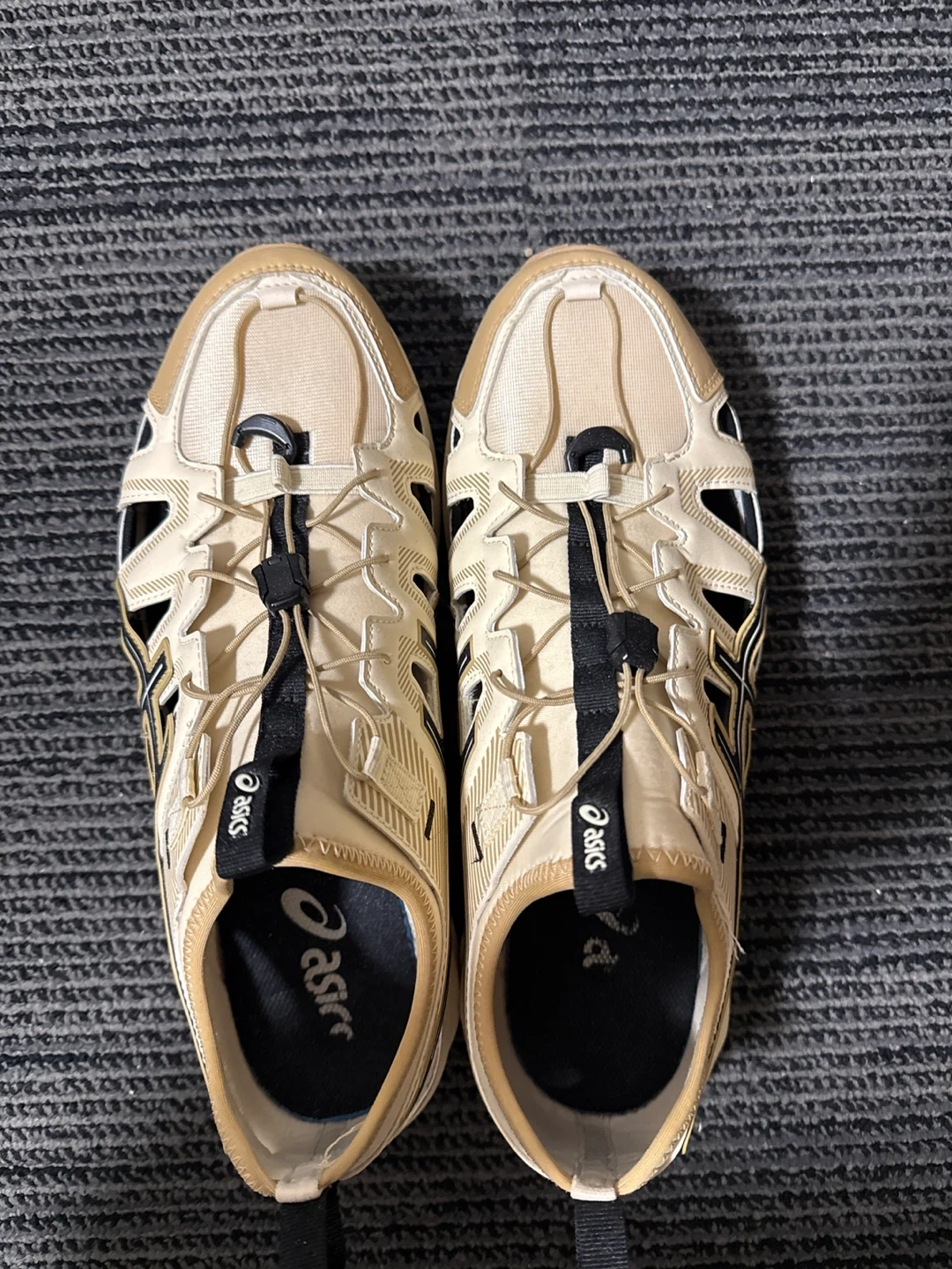 ASICS Gel-Sonoma SE trail running shoes in Marzipan Black. Size 10.5 US men's. Features a breathable mesh upper and durable outsole for traction. Perfect for outdoor adventures!