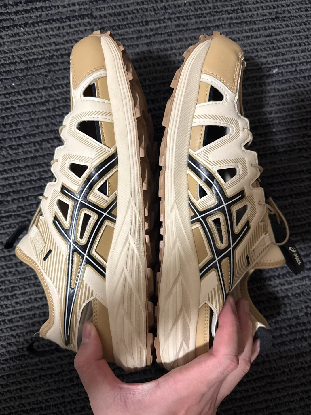ASICS Gel-Sonoma SE trail running shoes in Marzipan Black. Size 10.5 US men's. Features a breathable mesh upper and durable outsole for traction. Perfect for outdoor adventures!