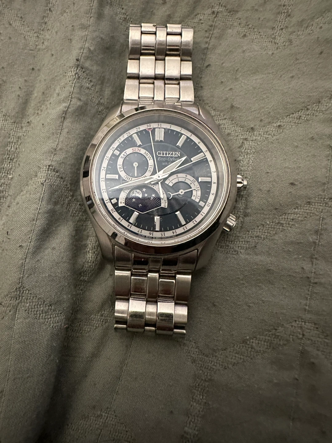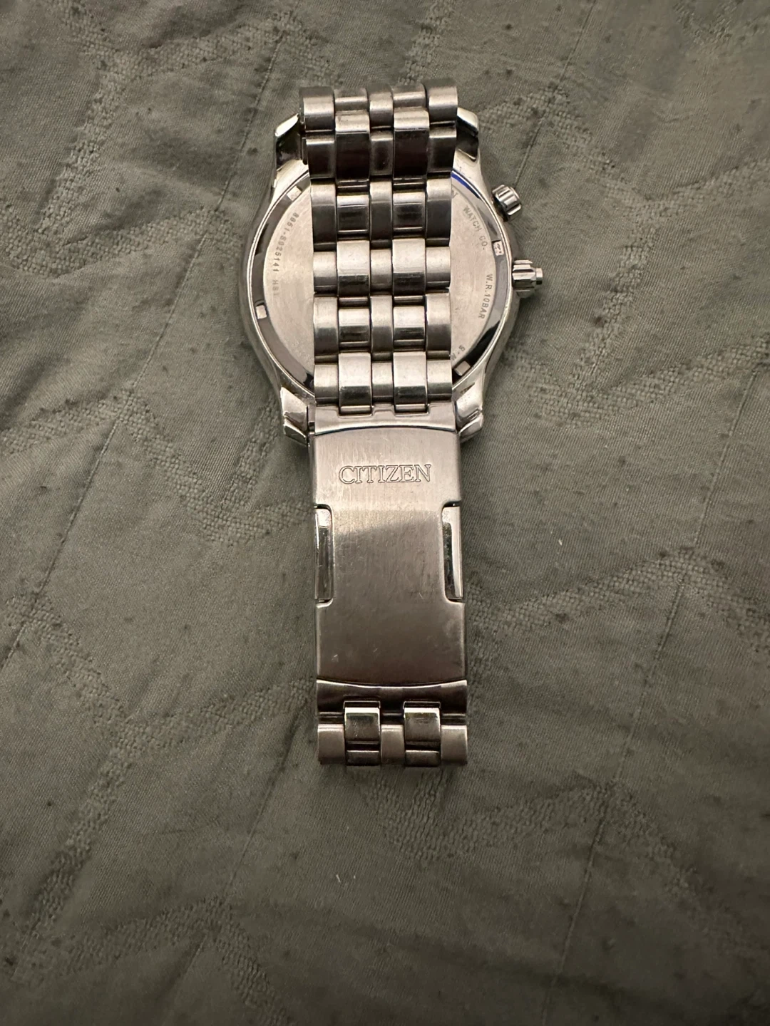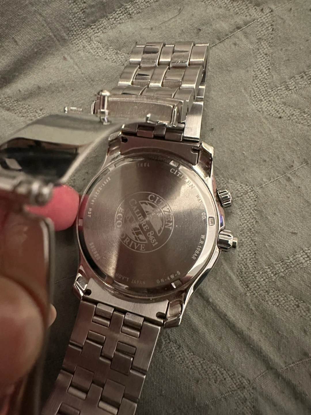 Selling a Citizen Eco-Drive Calibre 8651 watch. It's in great shape and features a stainless steel band. The back of the watch indicates it is water resistant to 10BAR. A stylish and functional timepiece!