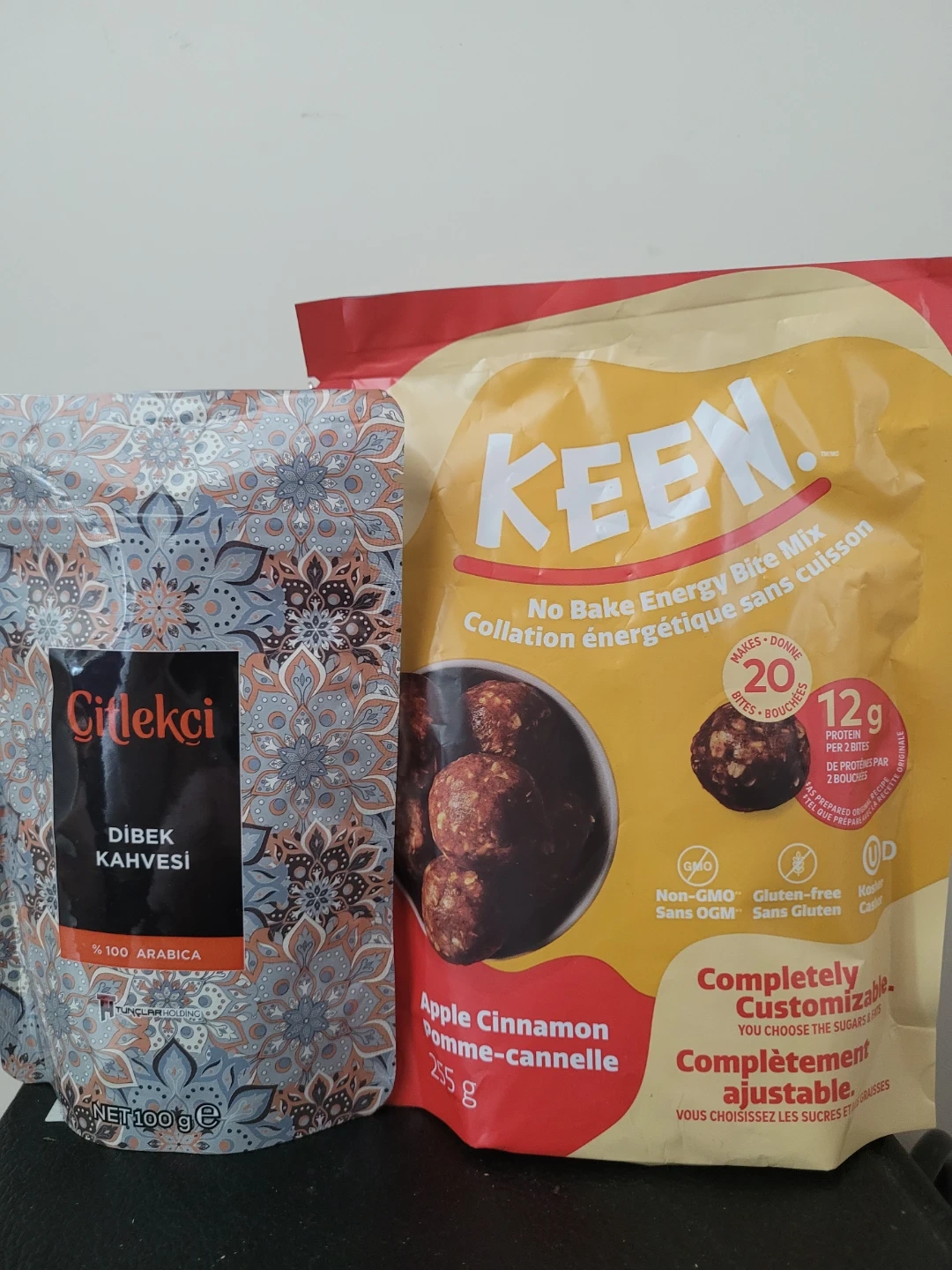 879Selling a bag of Citlckci Dibek coffee, a Turkish coffee. It's a 100g bag of ground Turkish coffee with a mix of ingredients. Enjoy a cup of this unique Turkish coffee! Exp 2027 Keen no bake energyball mix! Great party snack or to go. Exp Dec 2025