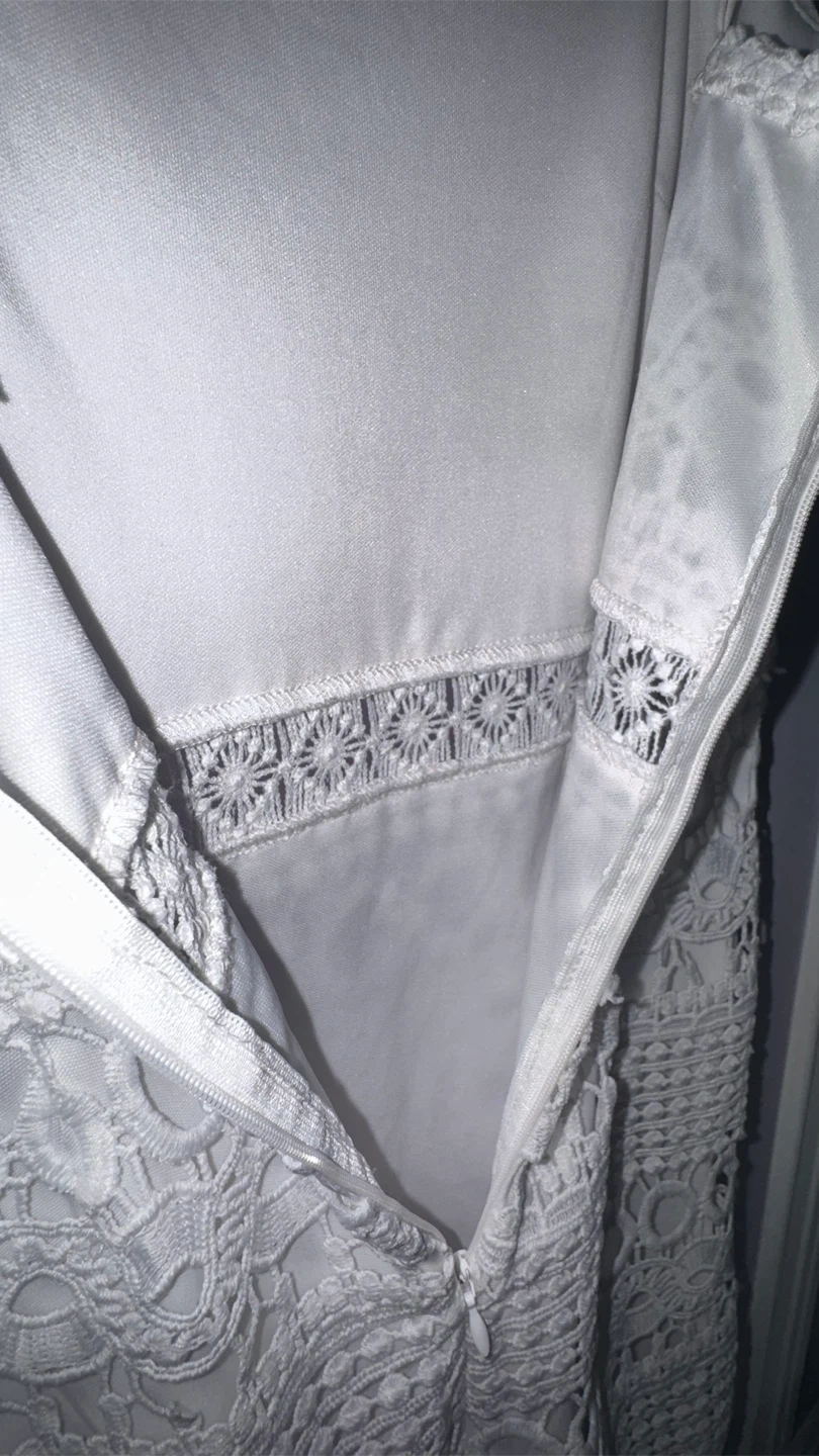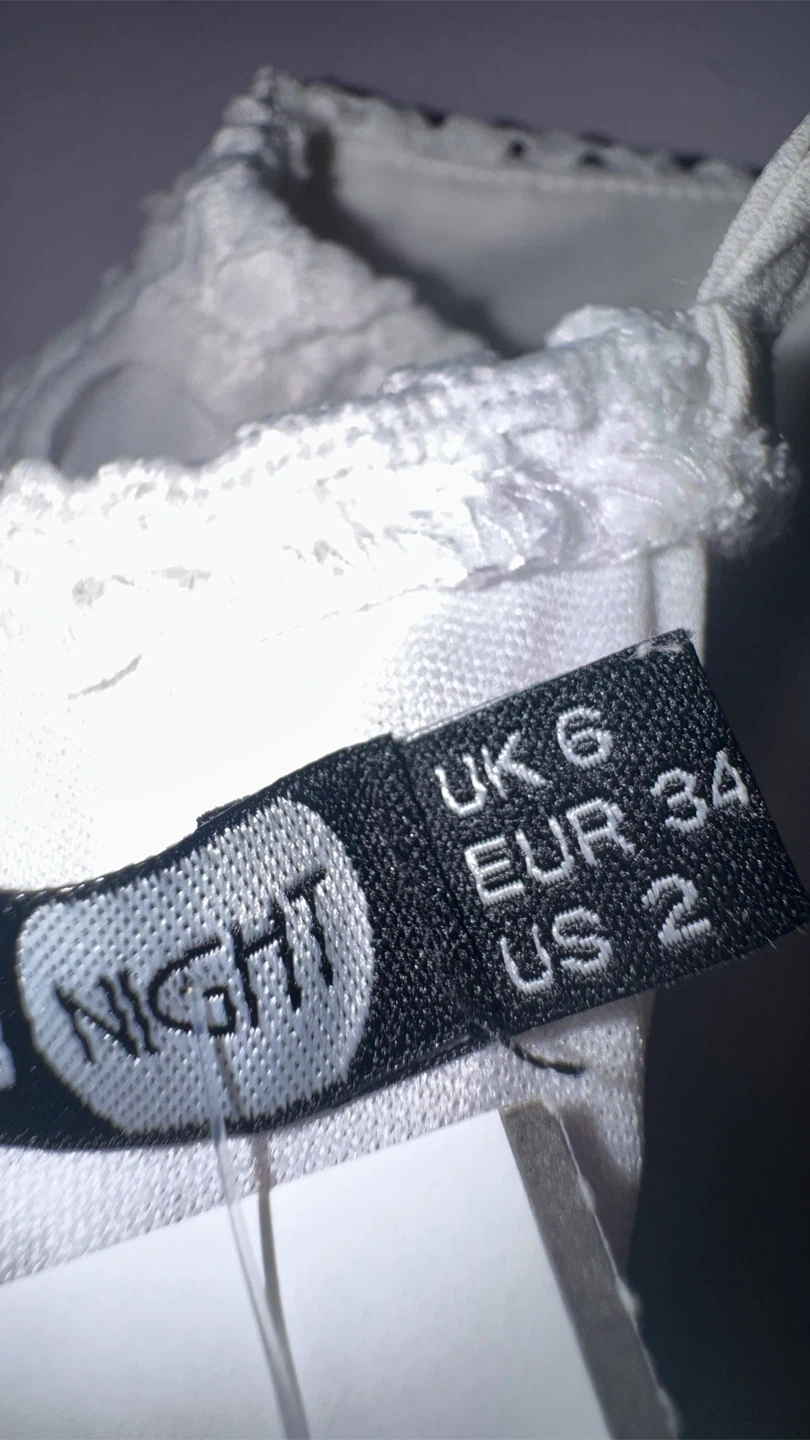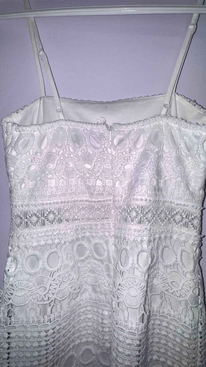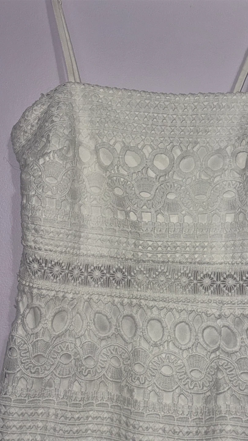 A lovely white lace mini dress from Boohoo. It features a square neckline and delicate lace detailing throughout. Perfect for a summer event or a night out!