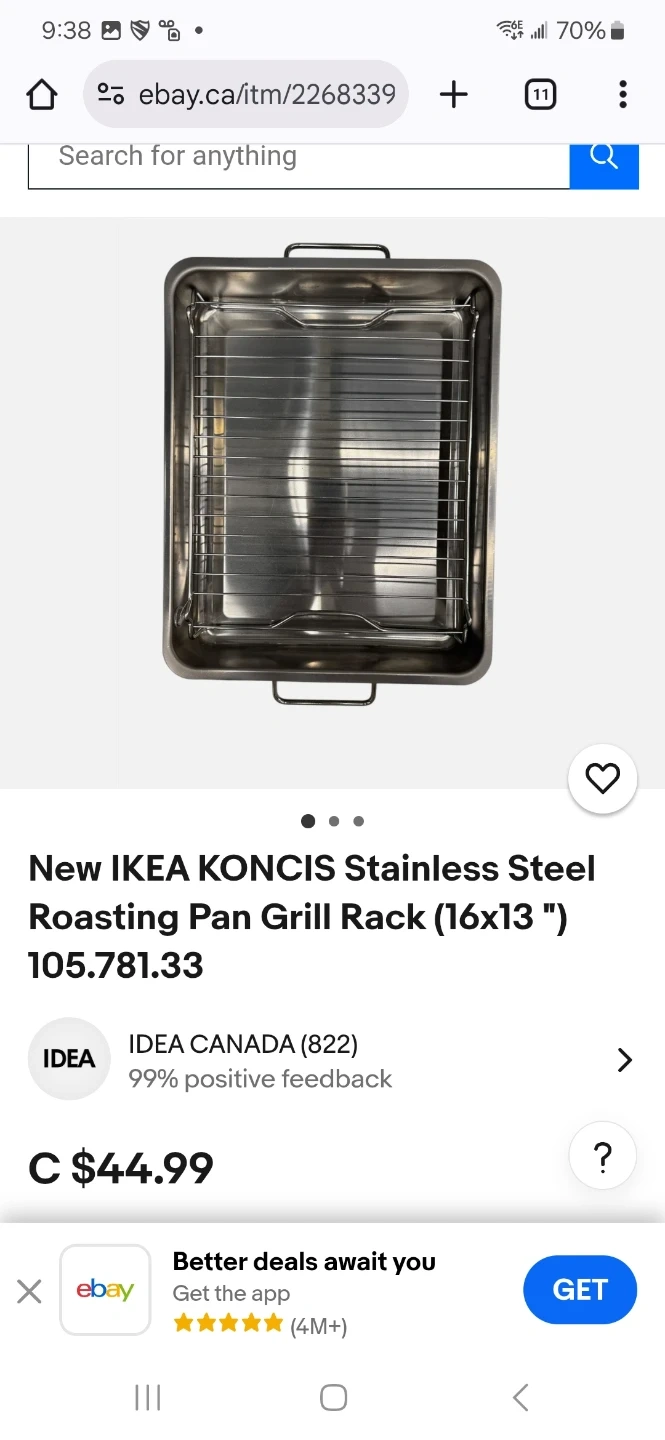 Selling a stainless steel IKEA Koncis roasting pan with grill rack. It measures 16x13 inches. This pan is great for roasting and grilling! Originally bought for $44.99