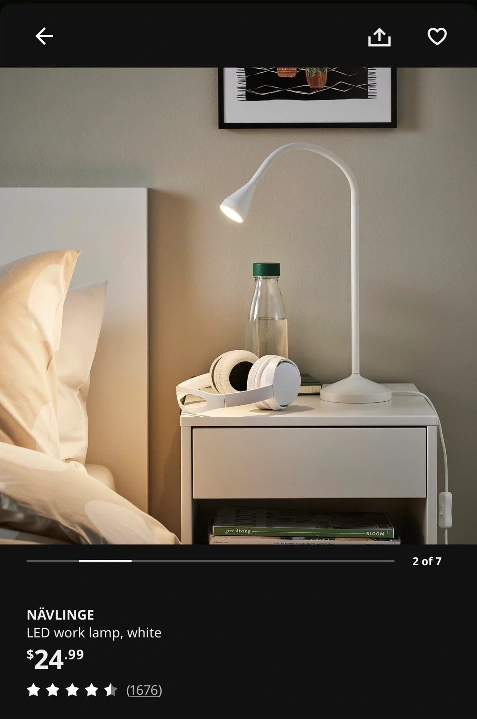 This is an IKEA NÄVLINGE LED work lamp in white. It's a flexible gooseneck design for directing light. Perfect for a desk or nightstand!