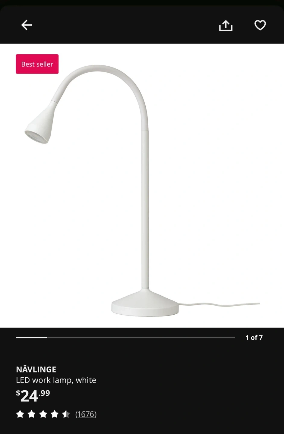 This is an IKEA NÄVLINGE LED work lamp in white. It's a flexible gooseneck design for directing light. Perfect for a desk or nightstand!