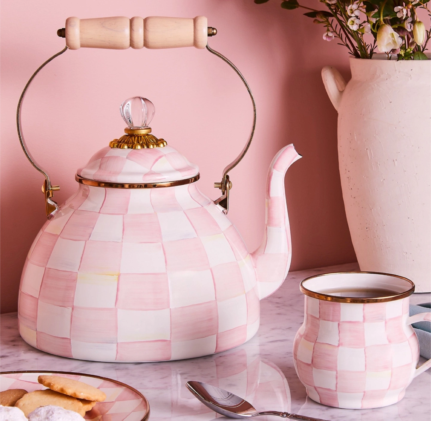 MacKenzie-Childs Pink Rosy Check Tea Kettle