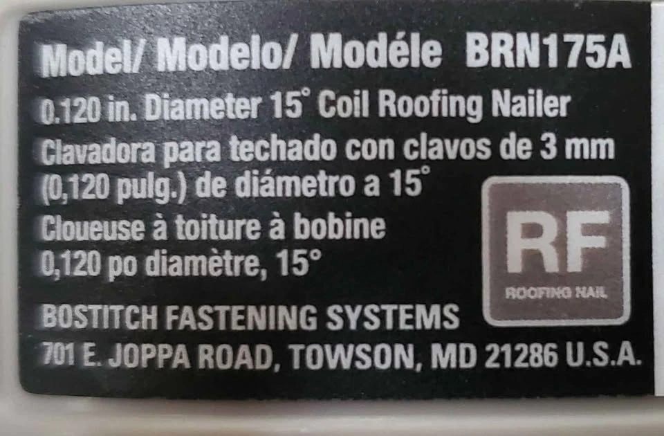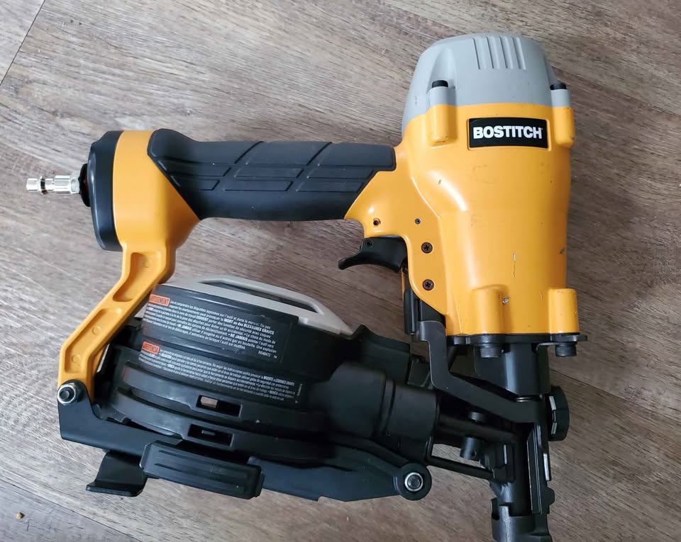 Bostitch Pneumatic Roofing Nailer - 15° Angle - Tool-Free Depth Adjustment - Dual Door Magazine. It is working fine with no issues. Check first and then buy. Final sale. Cash & local pickup only. Price is firm. First-come-first-served & no holds. Text me what time you will be coming. Intersection Bramalea & Bovaird. Pickup location: Cordgrass Cres, Brampton (L6r2a2). Text before coming to confirm availability, and I will text you my house number.
