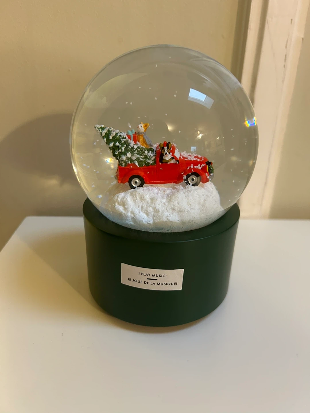 This adorable Indigo snow globe features a charming scene inside and plays music! It's brand new and would make a lovely addition to any room or a sweet gift for someone special
