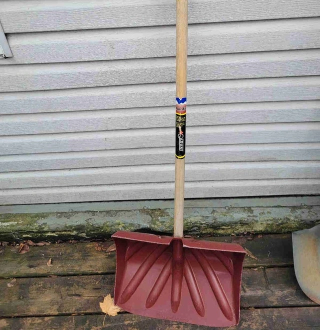 I'm selling a snow shovel, perfect for clearing your driveway or walkway this winter season. This used shovel is in good condition and ready for another winter of use. Get ready for the snow with this sturdy shovel! Approximate dimensions: Handle Material: Wood, Blade Material: Durable Plastic. If the ad is up, the shovel is still available, ready to help you conquer the snow!