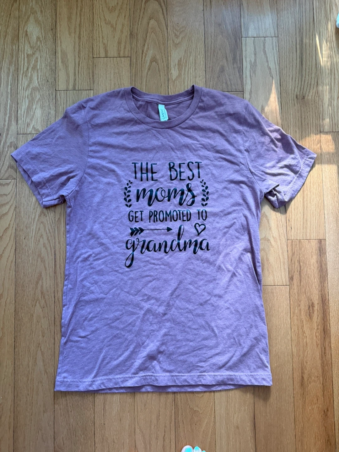 This Bella+Canvas t-shirt 'The best moms get promoted to grandma'.
