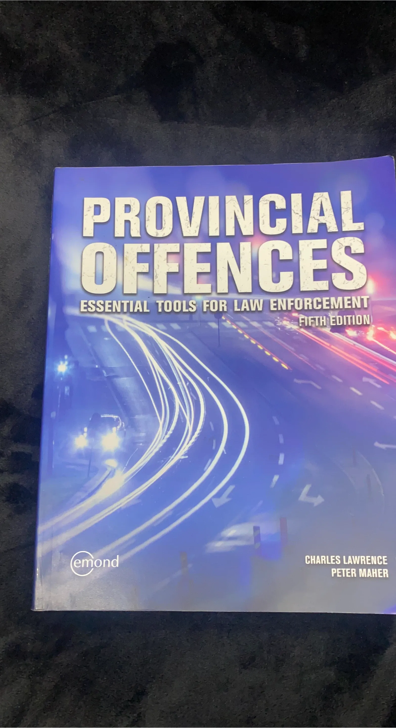 This is the Emond Provincial Offences: Essential Tools for Law Enforcement textbook, Fifth Edition. It's a comprehensive guide to provincial offences, and its clear and concise language makes it easy to understand. I'm selling this textbook in used condition, it has some wear on the cover, but the pages are clean and unmarked, offering great value for law enforcement students or professionals needing a reference guide. A new copy of this book typically retails for around $120-$150, so this is a great deal for a textbook in good condition!