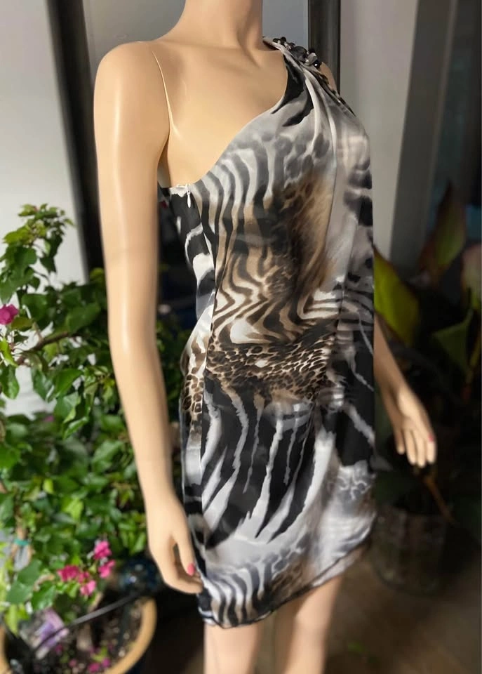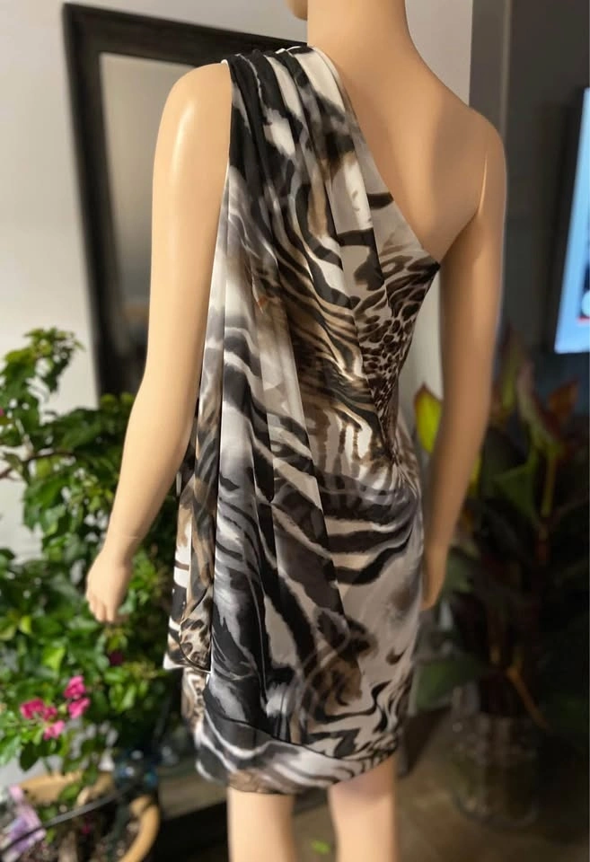 NWT Onyx Nite Brown Animal Print One-Shoulder Dress (Size 2) 403