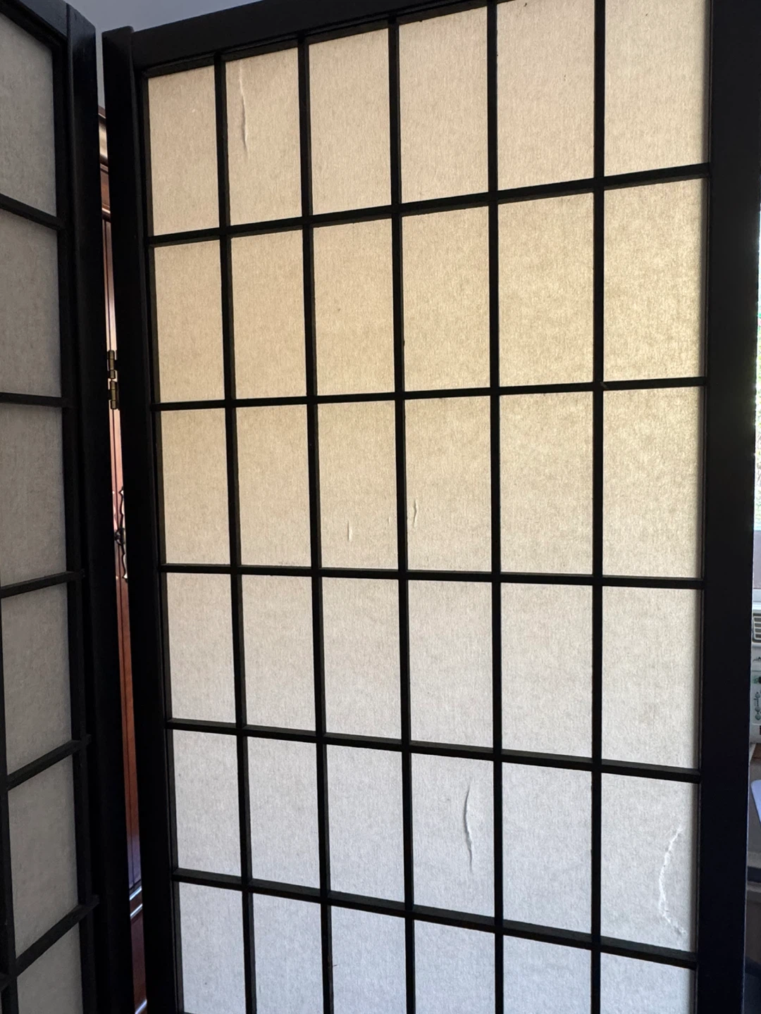 Selling a lovely room divider screen! It features a black wood frame with rice paper panels. It's perfect adding privacy or dividing a space in your home. It's lightweight and easy to move around too.