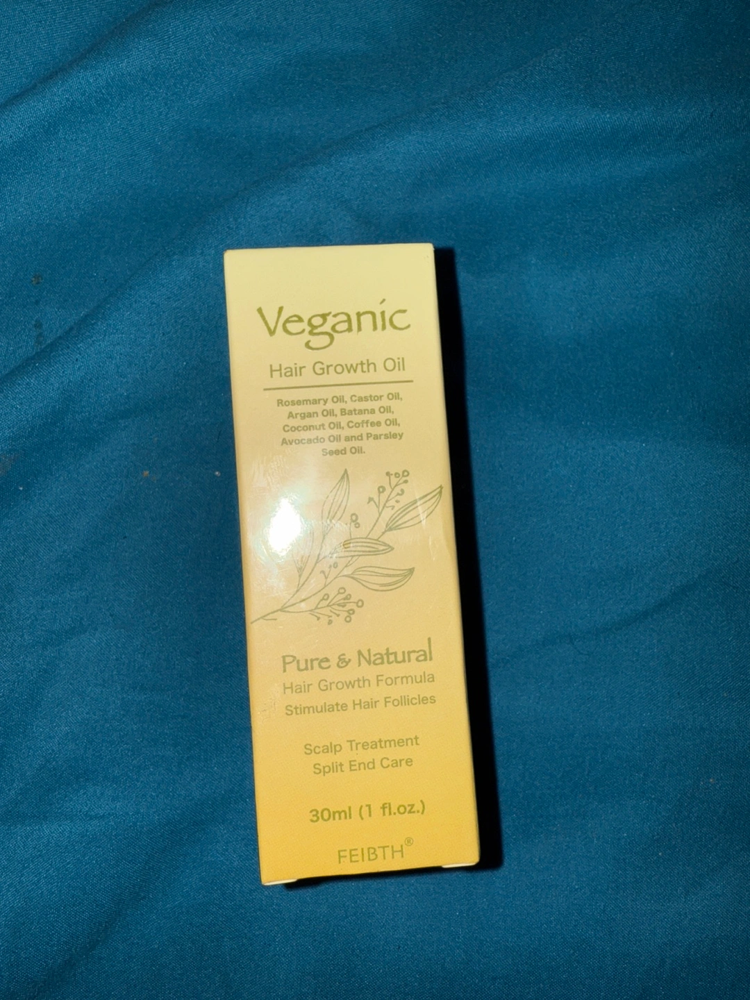 30ml bottle of Veganic Hair Growth Oil. Pure & natural formula. Includes rosemary, castor, argan, batana, coconut, coffee, avocado, and parsley seed oils. Treats scalp and split ends.