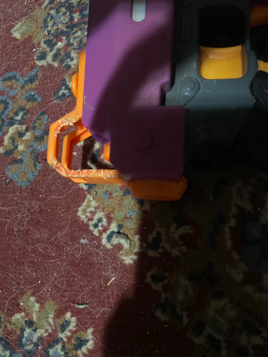This is a Nerf Fortnite AR-L Elite Dart Blaster. It's purple and grey with orange accents and has the Fortnite branding on it. It includes the blaster, a magazine, and a top sight. It's a great toy for Fortnite fans!
