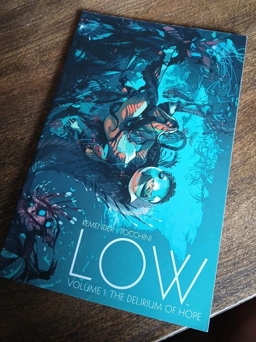 This is Low Volume 1: The Delirium of Hope, a graphic novel written by Remender and illustrated by Tocchini. It's the first volume in the series. Fans of sci-fi adventure stories will want this!