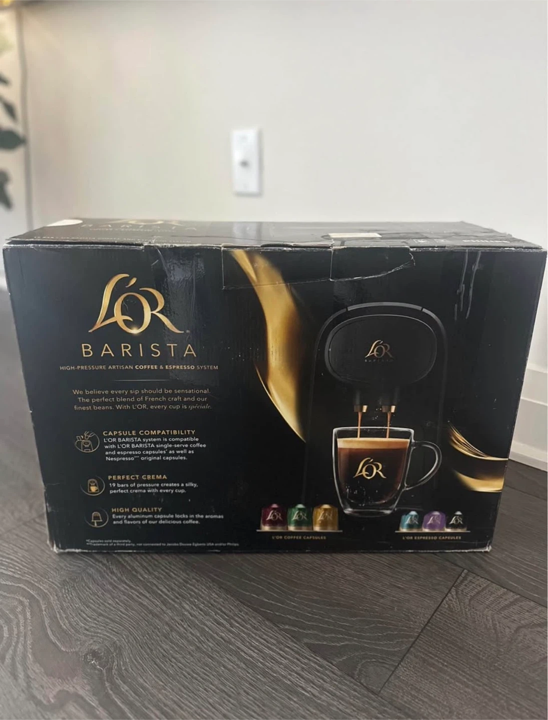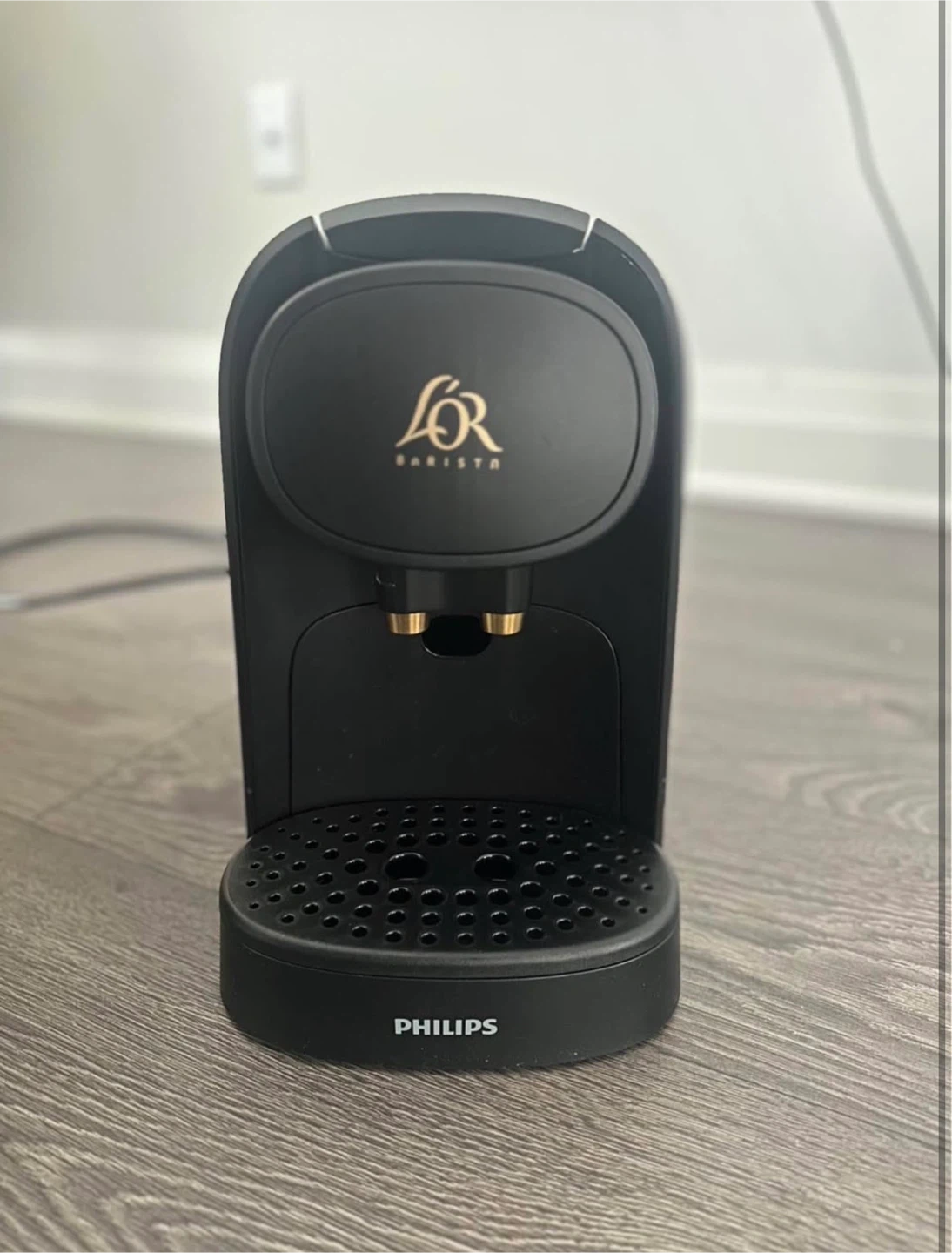 L’OR Barista System Coffee and Espresso Machine Combo by Philips. Like new condition, used only a few times. Compatible with L’OR capsules and most Nespresso Original capsules. Brew two espressos at once or one large coffee. Multiple size options for espresso, lungo and full cup coffee. Fast heat-up time. High pressure system for rich crema and strong flavor. Sleek, compact design that fits easily on a kitchen counter. Clean, well maintained and fully functional. Great option if you want café-quality coffee at home without paying retail price.