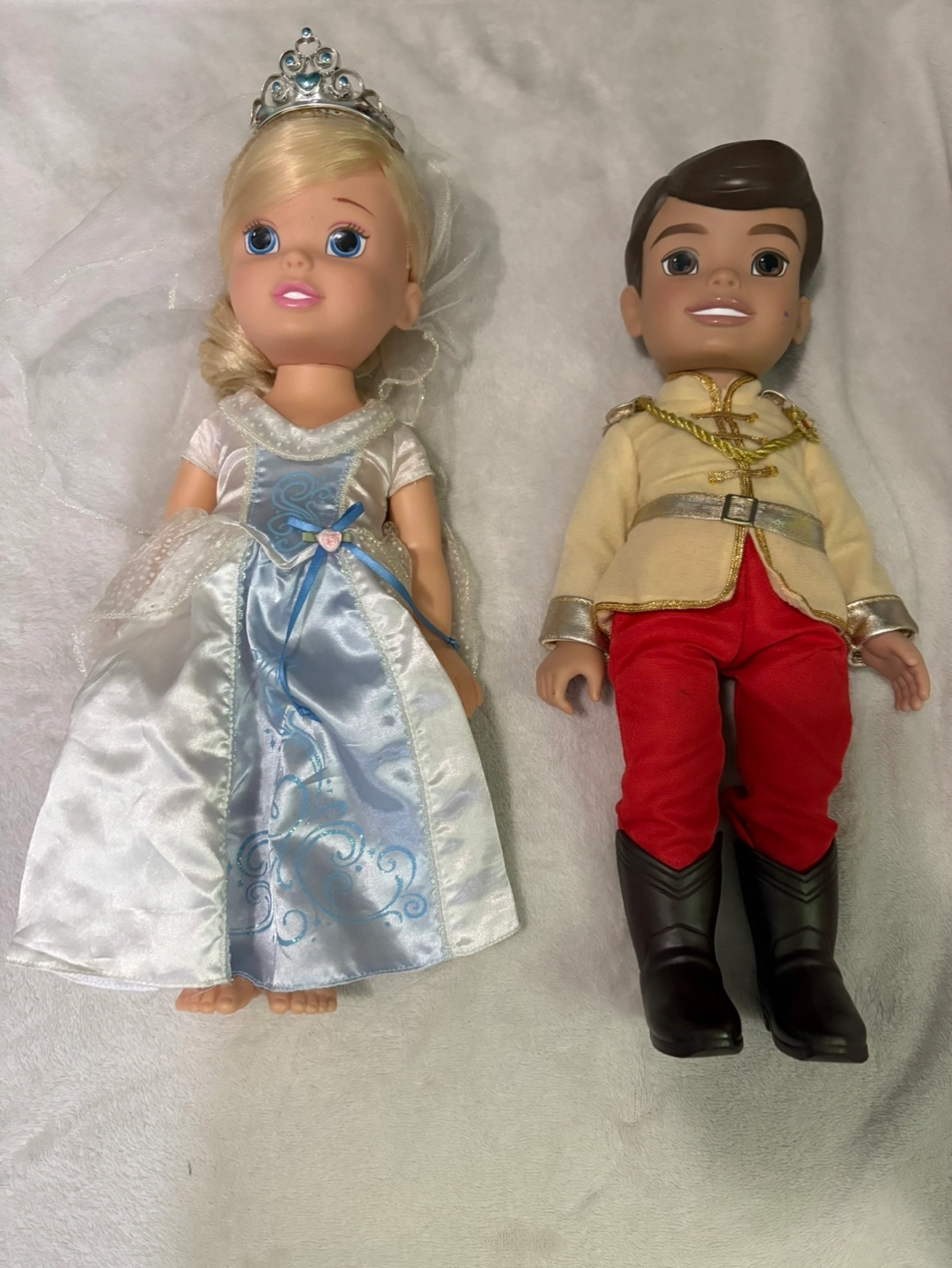 Collection of 7 Disney Princess dolls. Includes Cinderella and Prince Charming for $40 , Elsa and Anna $30, another Cinderella for $15 , another Elsa for $15 aurora for $10 comes with various outfits. Some dolls have accessories. Pre-loved condition. For all $110