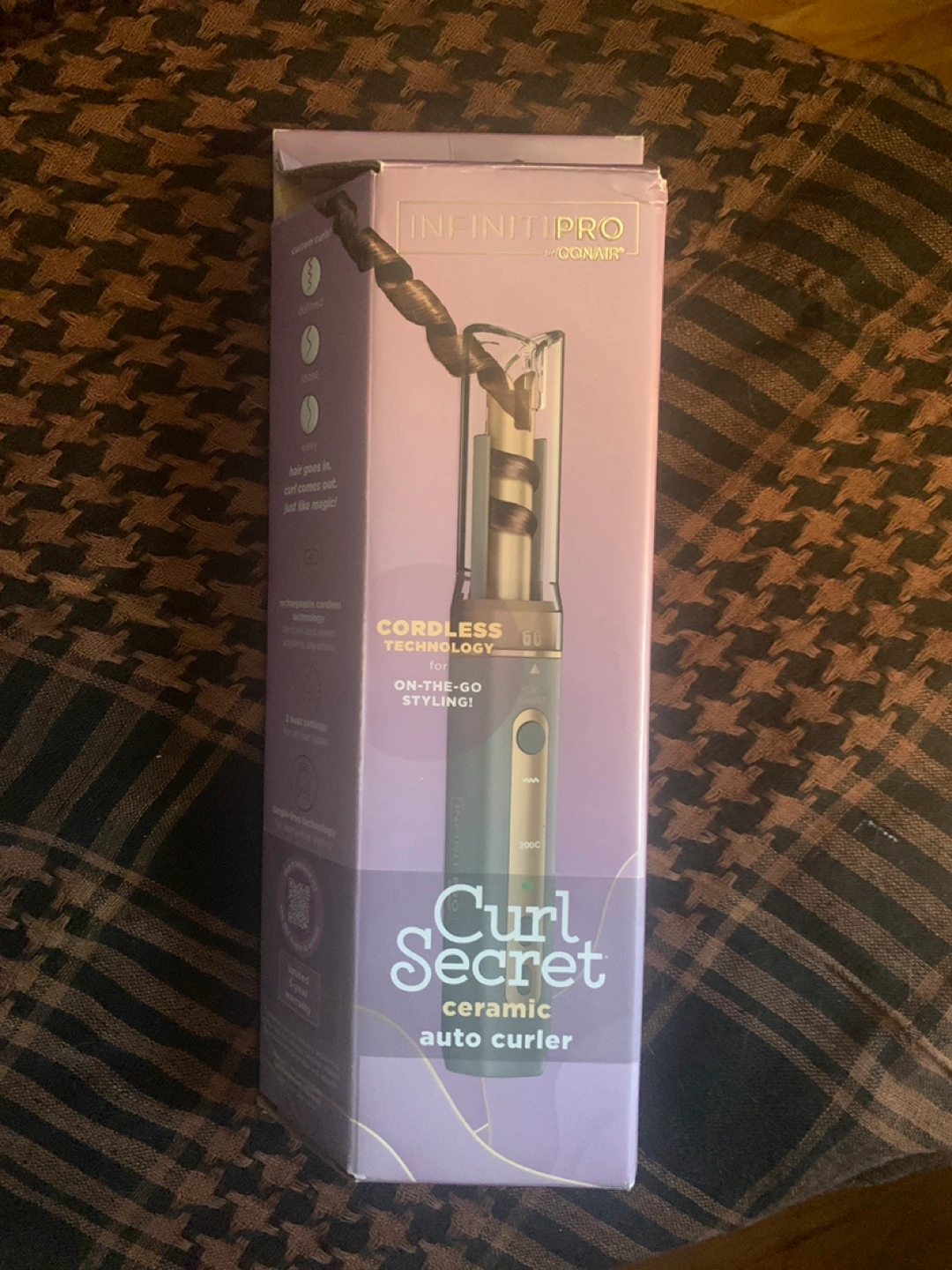 Selling an InfinitiPro by Conair Curl Secret ceramic auto curler! It features cordless technology for on-the-go styling. Just put your hair in, and a curl comes out like magic! It also has 2 heat settings