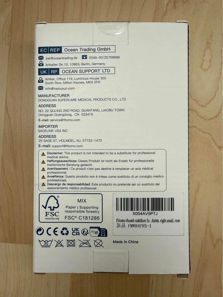Fitomo Thumb Brace (Right Hand - Small Rose) in a sealed box, never used.