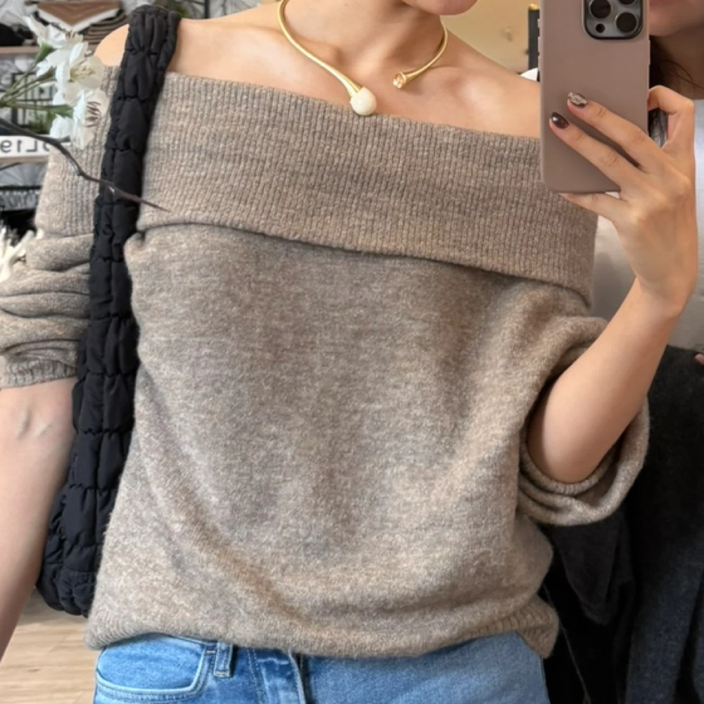 Cozy H&M off-the-shoulder sweater in size S! It's in great condition and perfect for layering or wearing on its own. The material is soft and comfortable, making it a great addition to any wardrobe. For pickup or to meet in downtown.
