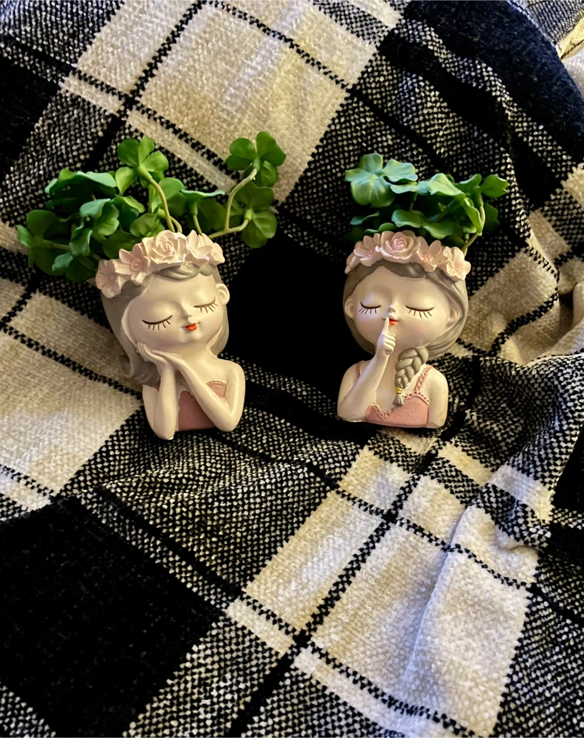 These adorable girl-shaped flower pots are perfect for adding a touch of whimsy to your home or garden. They each have a sweet floral crown and come as a set of two. Great for small plants or succulents!