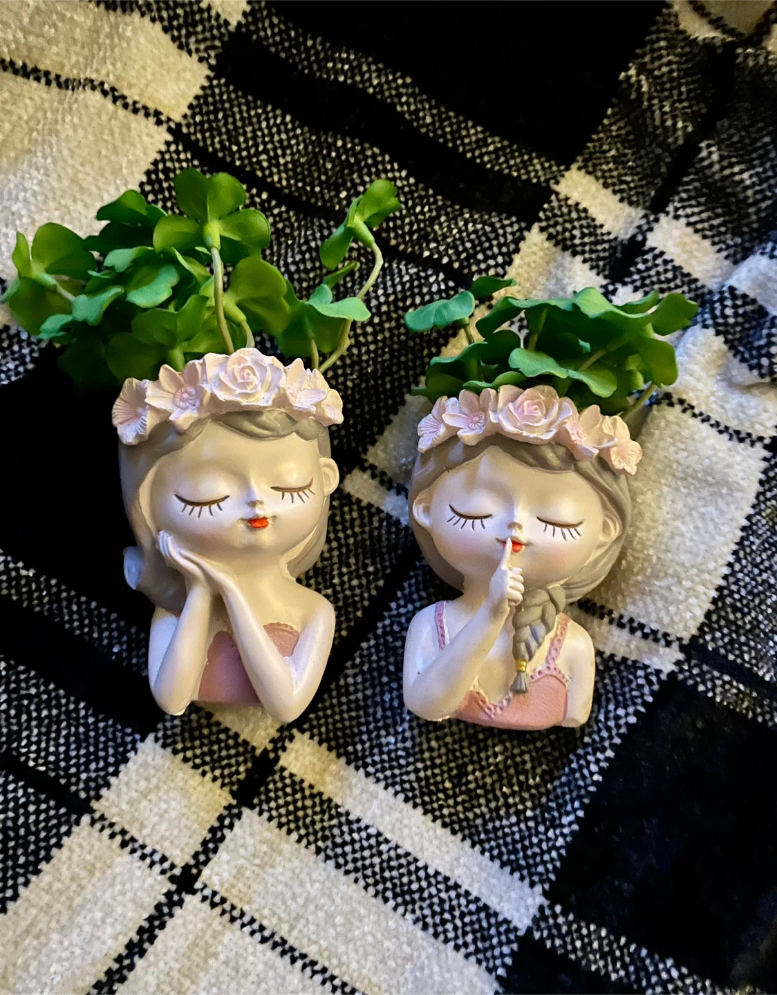 These adorable girl-shaped flower pots are perfect for adding a touch of whimsy to your home or garden. They each have a sweet floral crown and come as a set of two. Great for small plants or succulents!