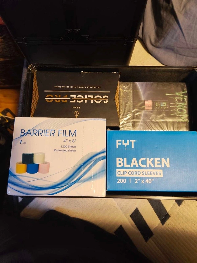 4. Brand new traveling case with keys. 5. 10 boxes of various tattoo cartridges (expires 2027, sizes 3RL to 11RL, 7 to 11 mag, 3 to 9 Round Shaders) and an additional 50 brand new unopened cartridges.