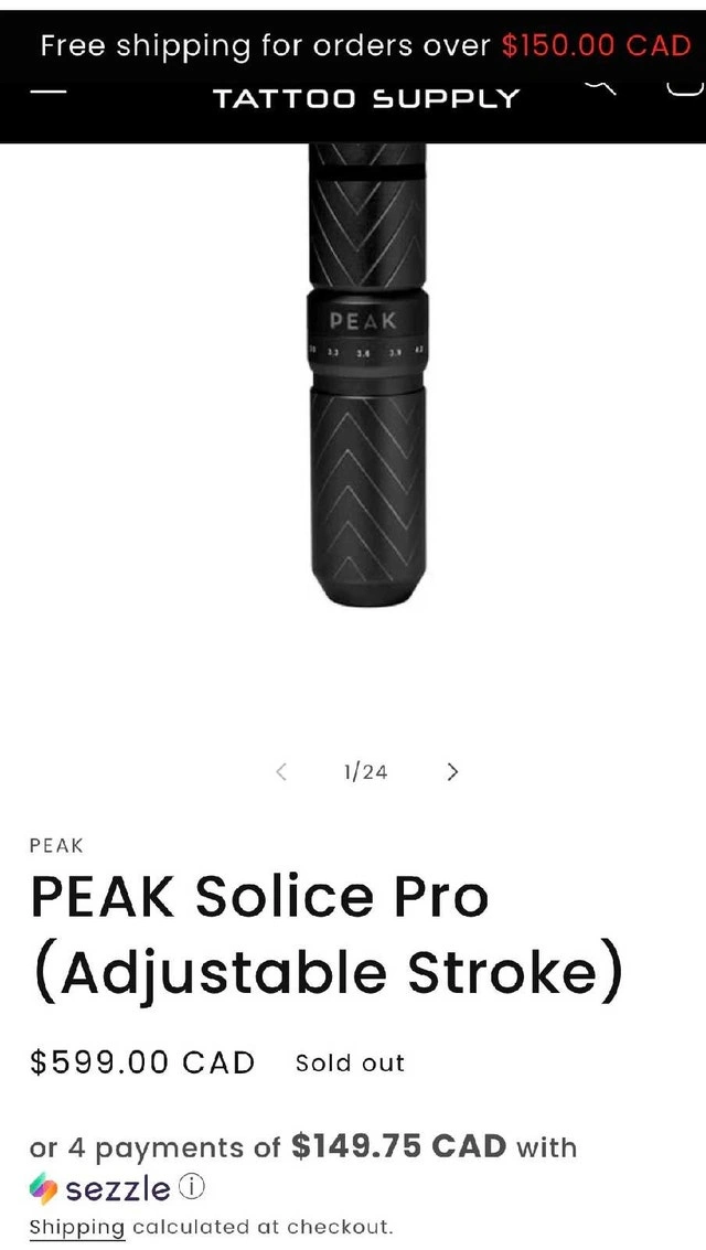 1. Peak Solice Pro wireless adjustable stroke tattoo machine (used approx. 10 hours).