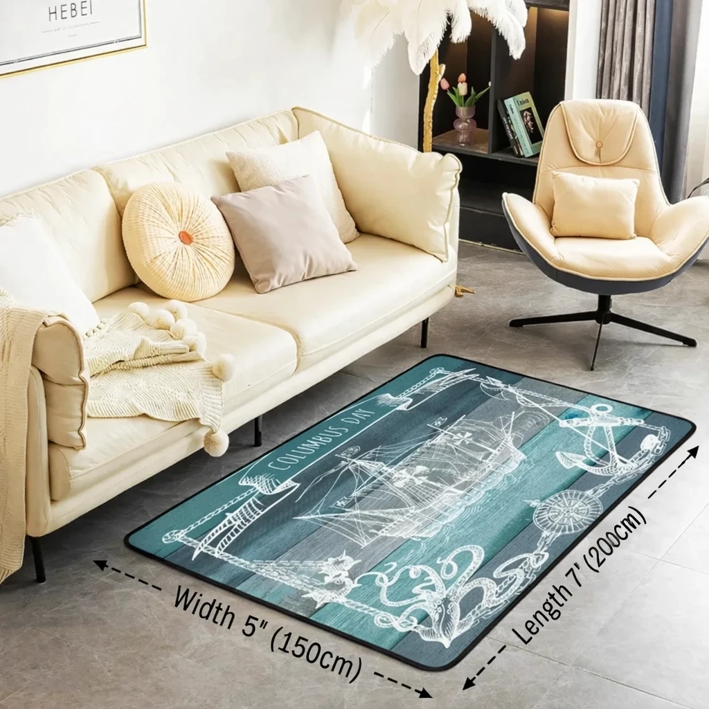 5x7 Nautical Sailboat Area Rug | Ocean Theme Non-Slip Carpet