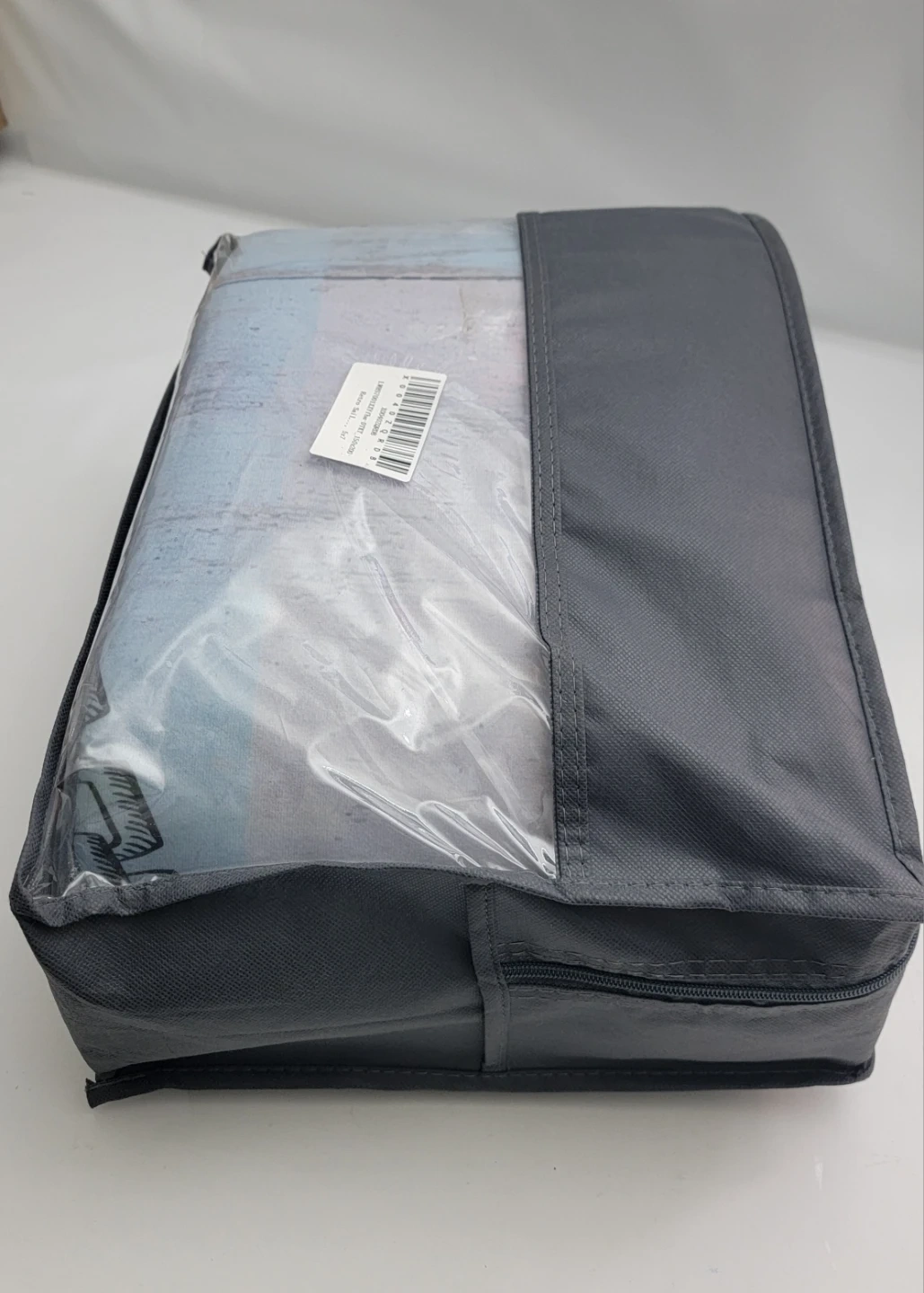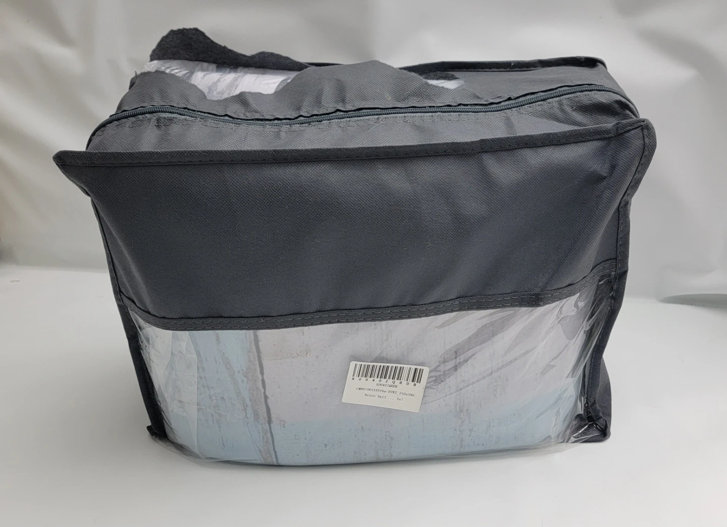 Rug is brand new and unused. Carry/storage bag has a small tear from handling, but the rug itself is in excellent brand new condition.