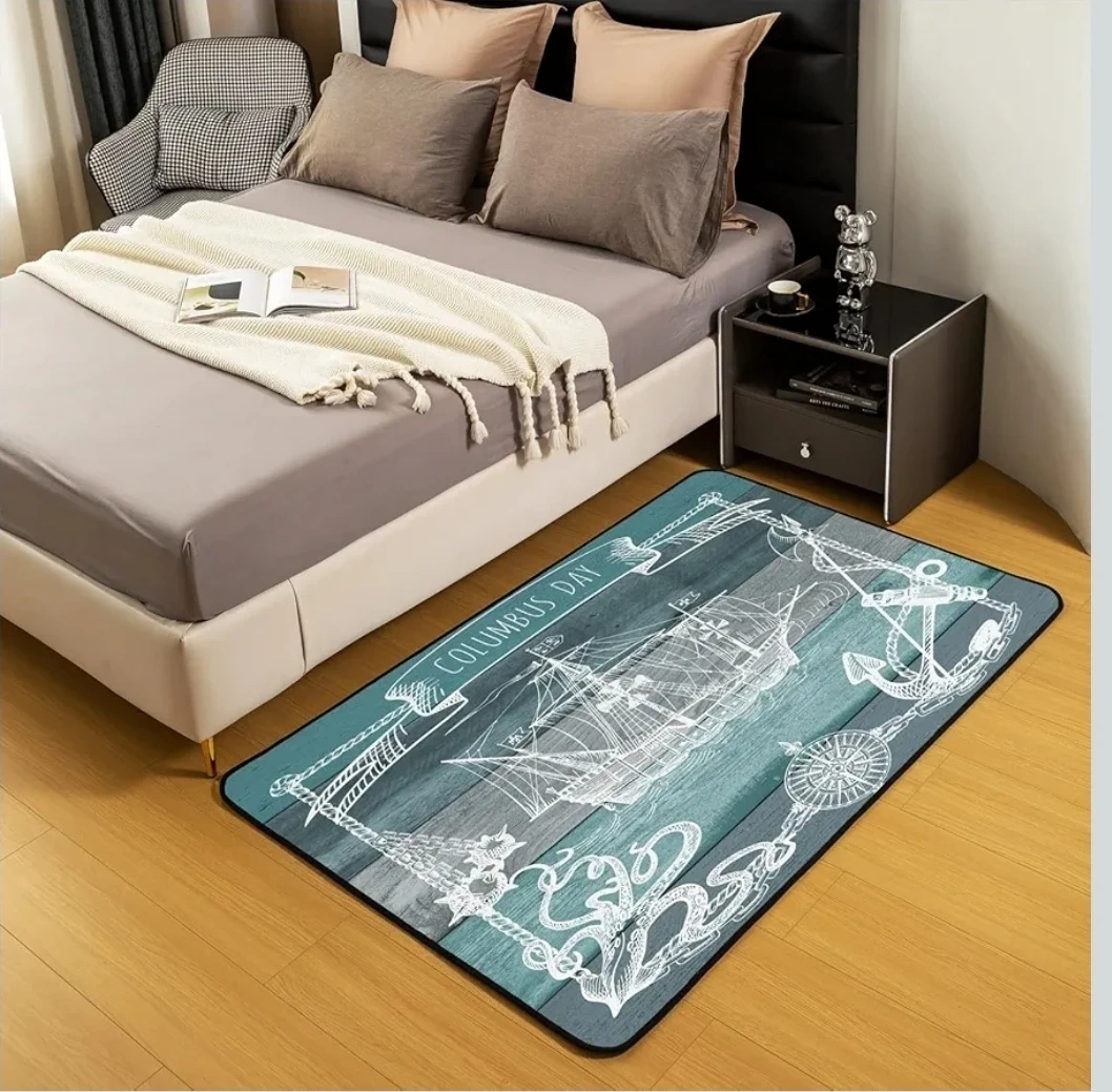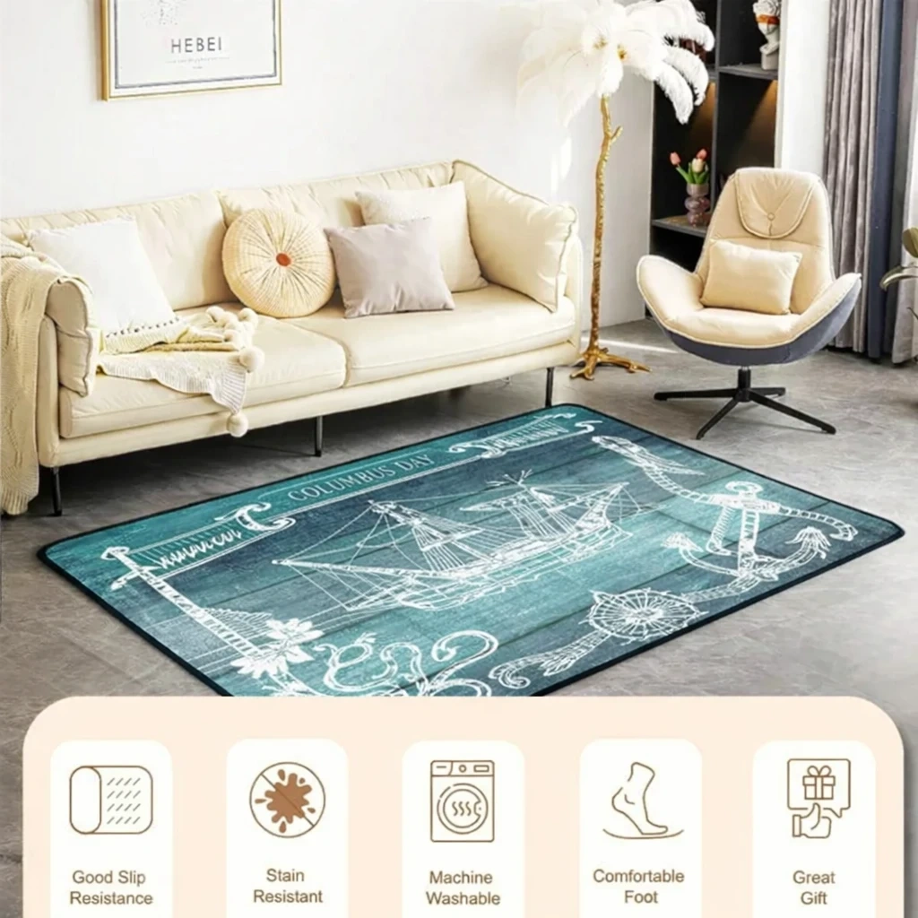 5x7 Nautical Sailboat Area Rug | Ocean Theme Non-Slip Carpet