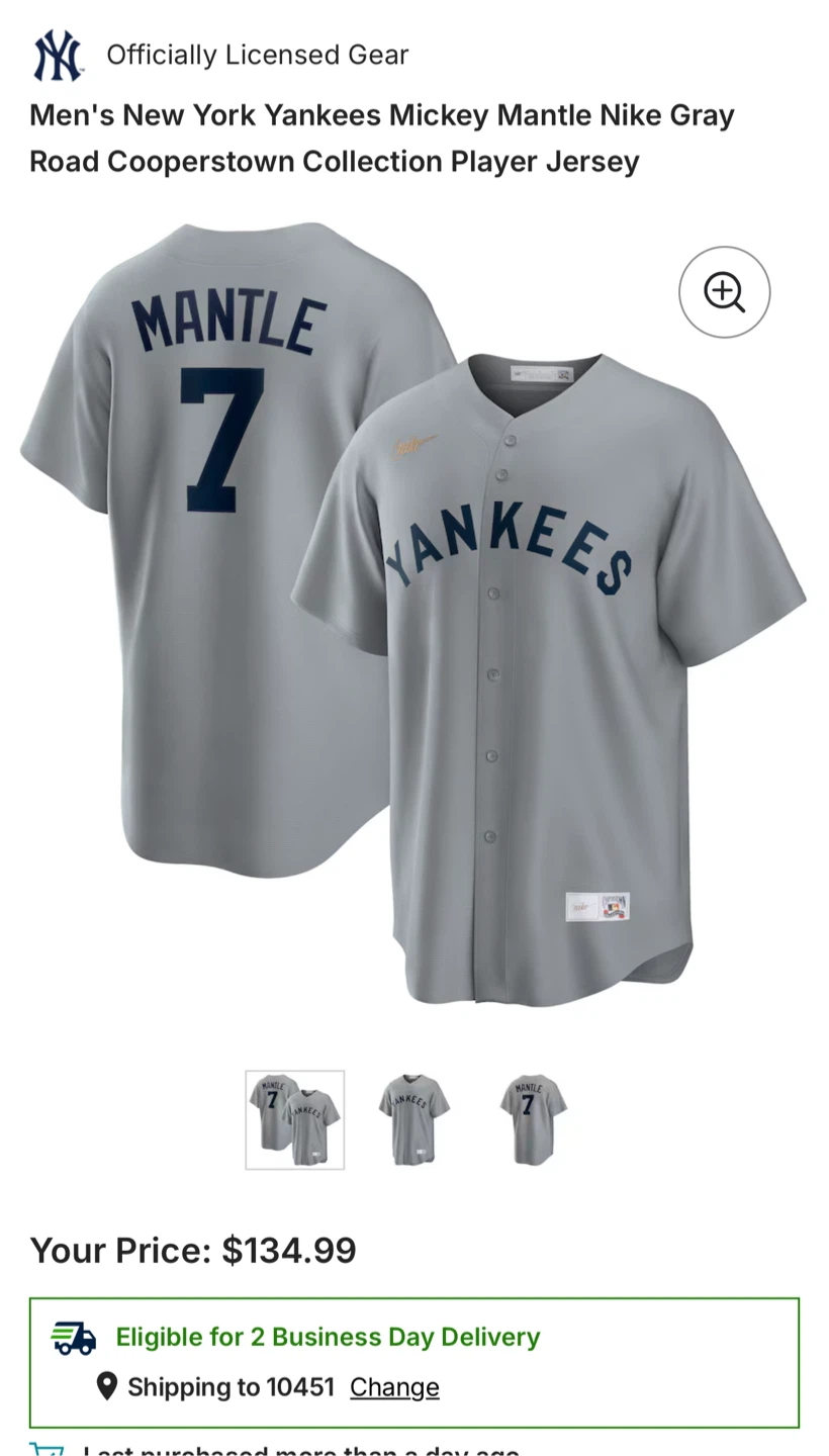 Selling a Nike New York Yankees Mickey Mantle gray road Cooperstown Collection player jersey. It's cheap and in great condition and ready for a new fan! also cames with a surprise GIFT