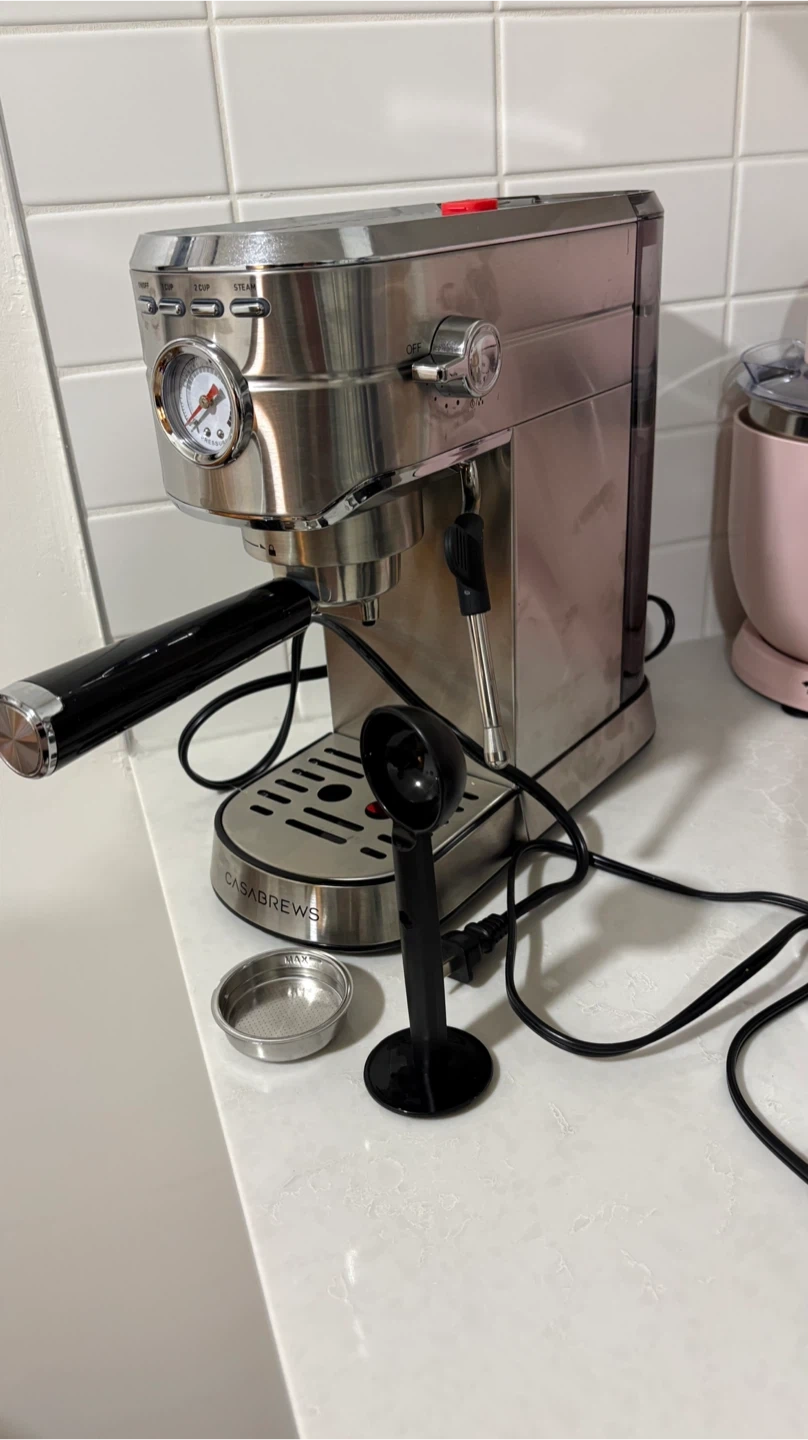 Make delicious espresso at home with this CASABREWS espresso machine. It's a compact and stylish addition to any kitchen. Comes with a portafilter and tamper. Brand new only used it once and I am not really a huge coffee person and don’t have the space for it.