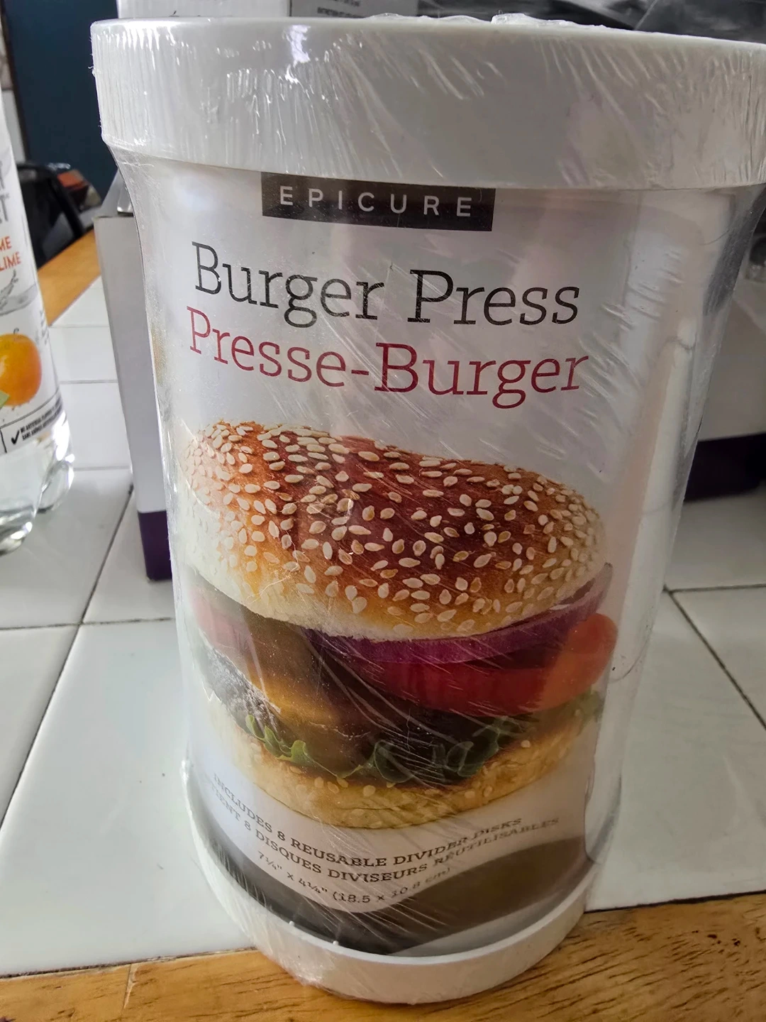 This Epicure Burger Press helps you make perfectly formed burgers. It includes 8 reusable divider disks for convenient storage. Press dimensions are 7.5" x 4.25" (19 x 10.8 cm).