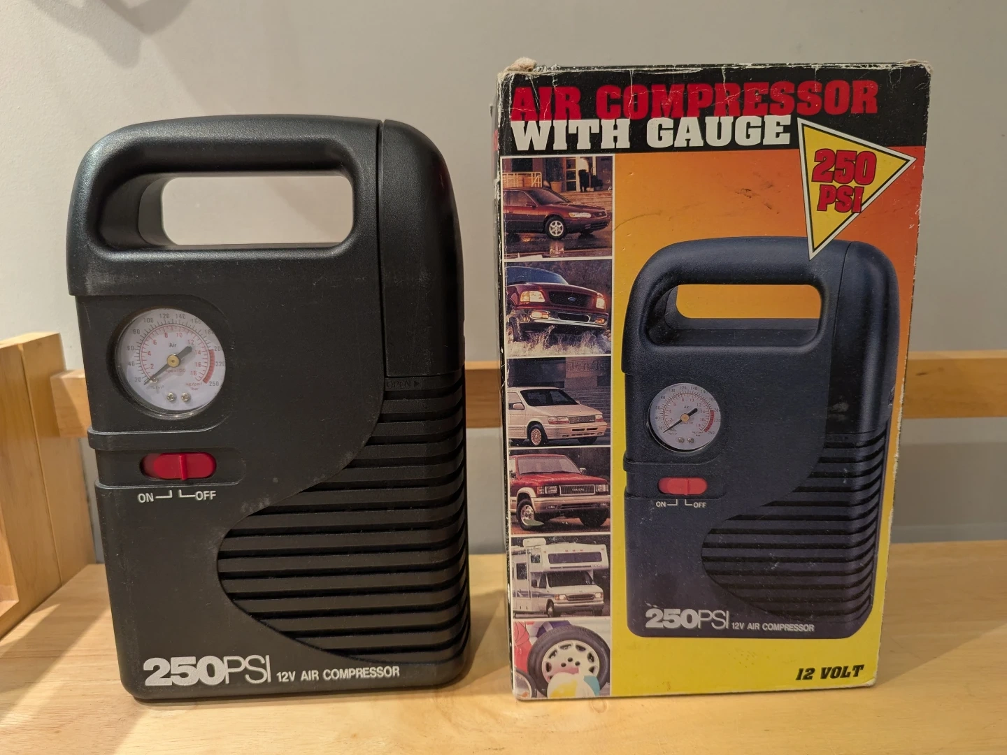 Black 250 PSI 12V Air Compressor with Gauge