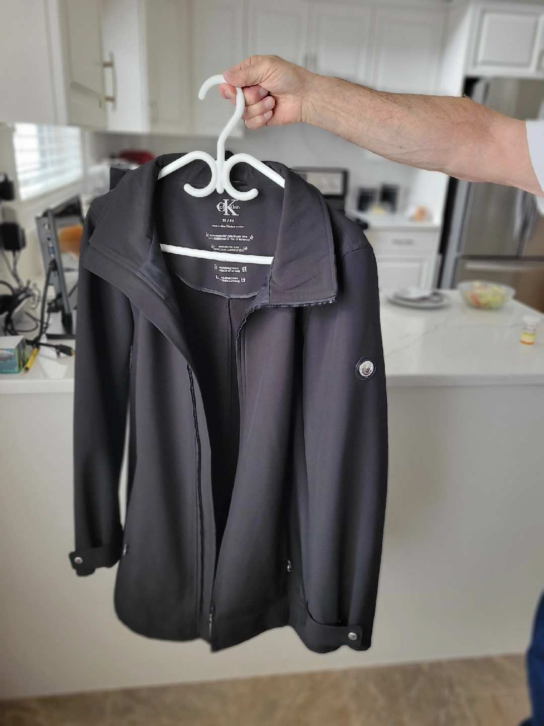 41Selling a Calvin Klein jacket in size XL/TG! It's a sleek black colour and in great condition. Perfect for layering or wearing on its own. Water repellent, stylish jacket.