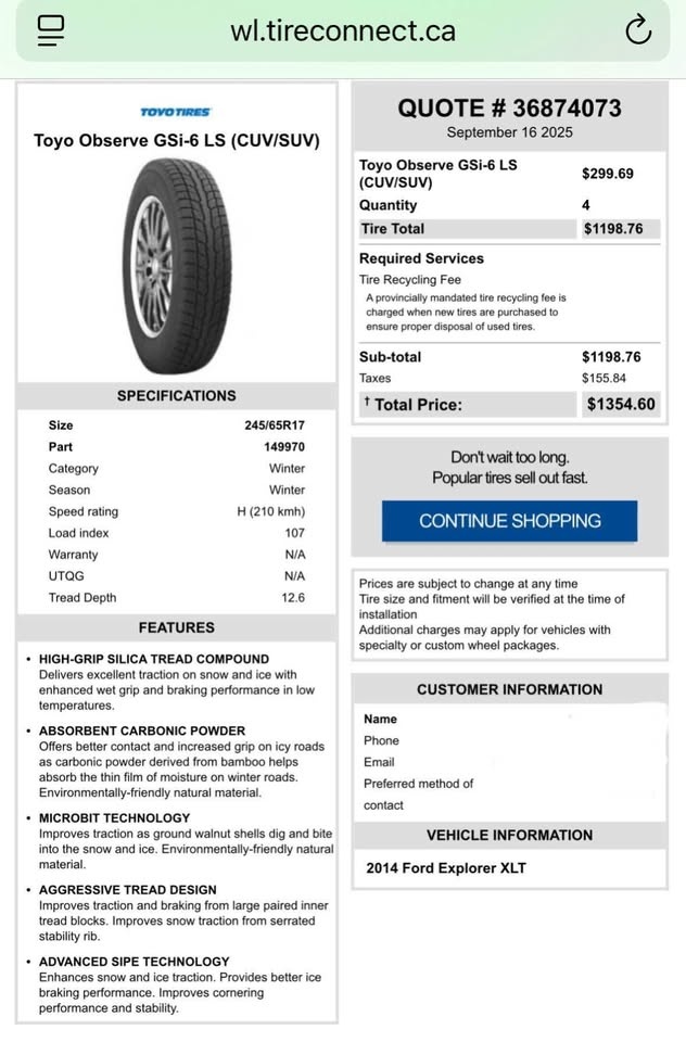 Winter Tires - Toyo Observe GSI-6 LS 245/65 R17