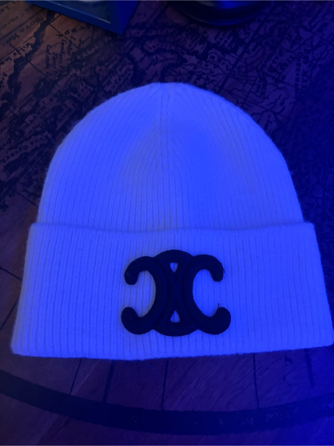 Selling a stylish Celine Paris beanie in white! It has a cool black logo on the front. Perfect for keeping warm and adding a touch of luxury to your outfit