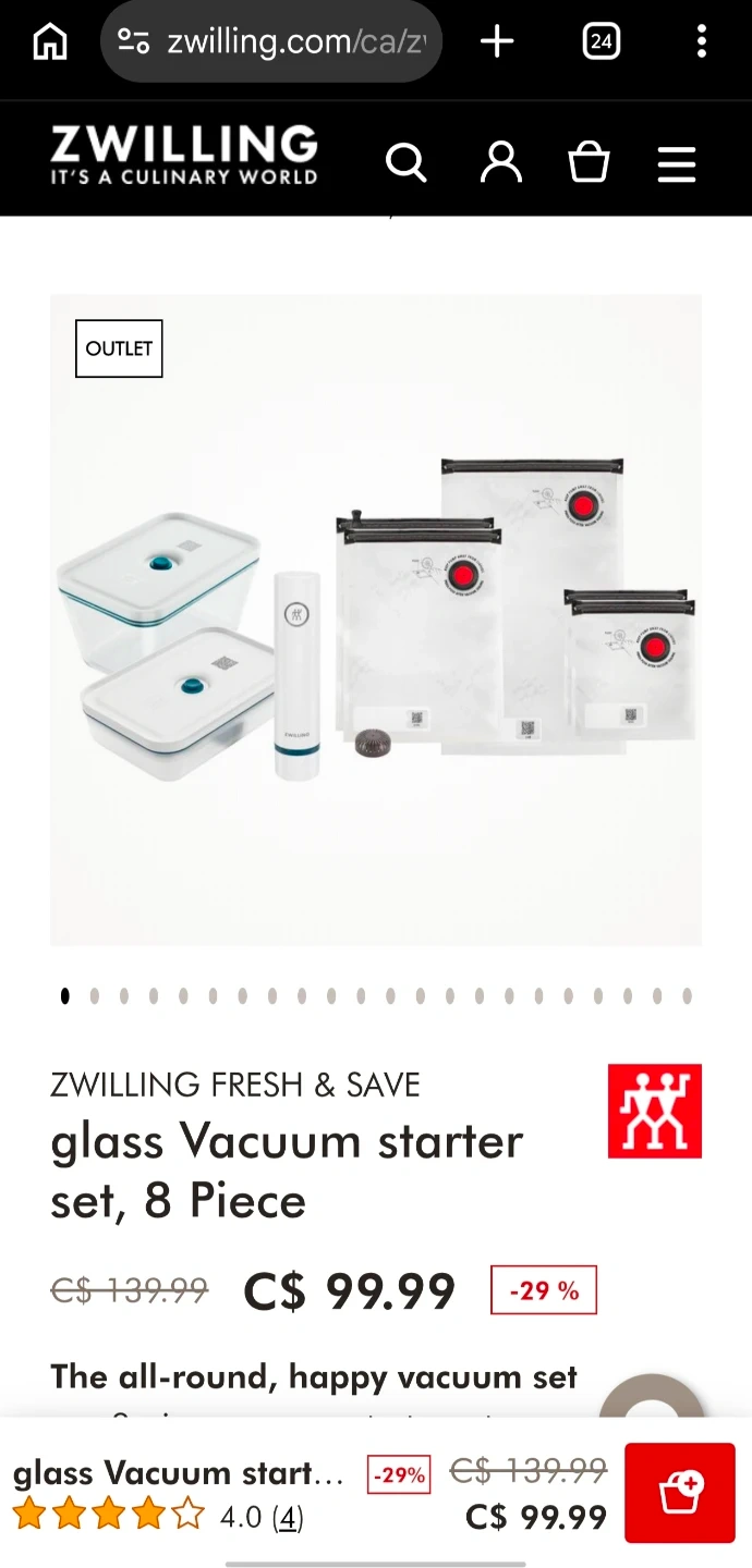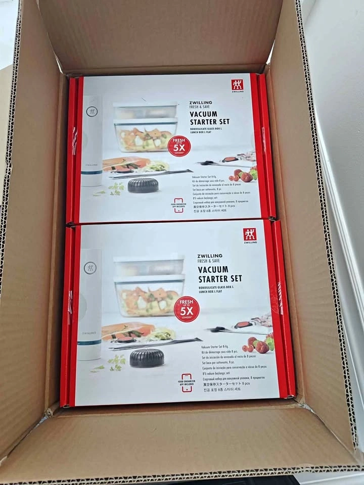 Brand new Zwilling Fresh & Save Vacuum Starter Set. Selling at almost full discount price. Brand new and never opened. Pickup at 330 Hwy7 east, Richmond Hill.