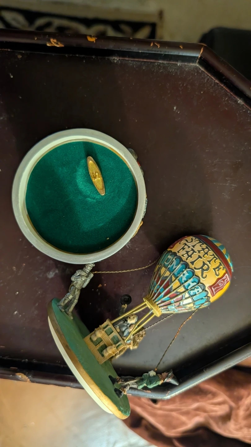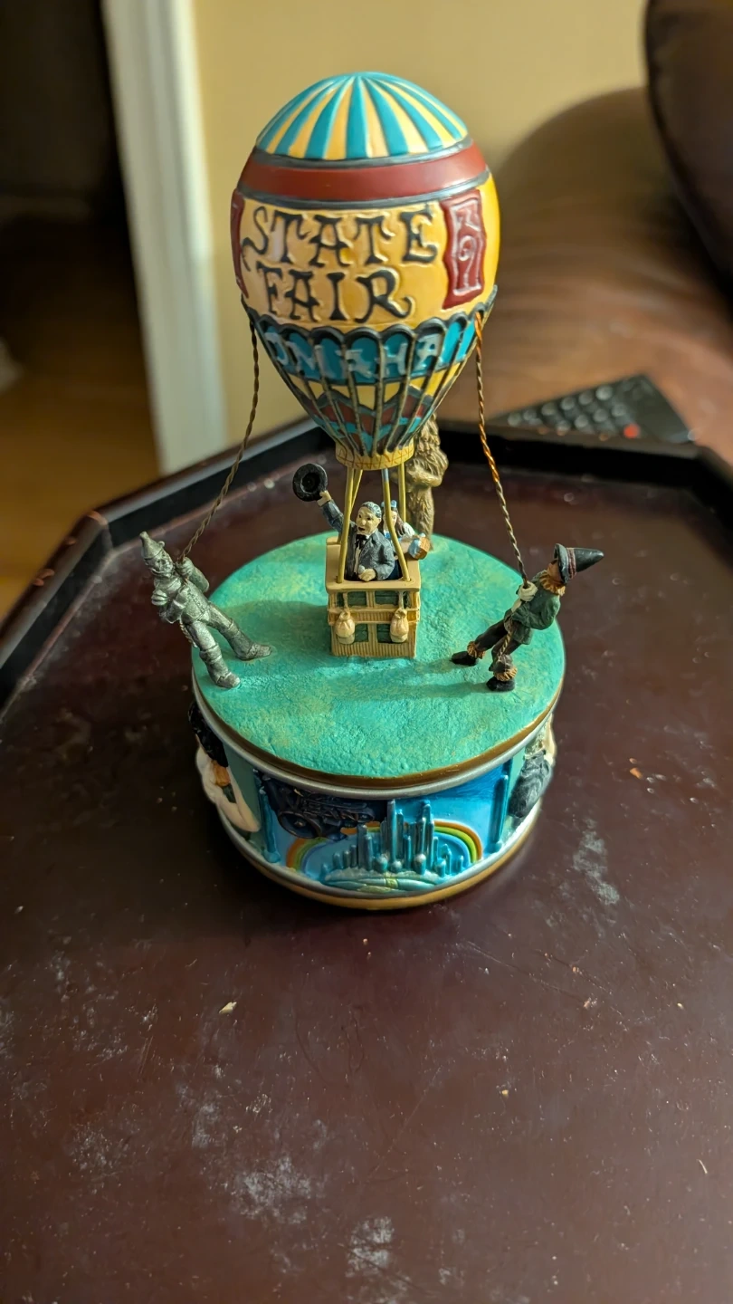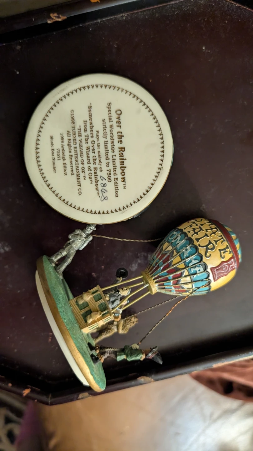 This is a music box that plays 'Over the Rainbow' from The Ardleigh Elliott Collection, a limited edition piece from The Wizard of Oz. The figurine is made from a resin material. In good working order.