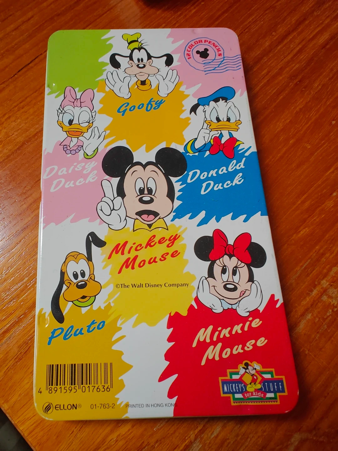 A set of 12 coloured pencils featuring Mickey Mouse and his friends. These pencils come in a tin case. Perfect for drawing and colouring! Made by ELLON.