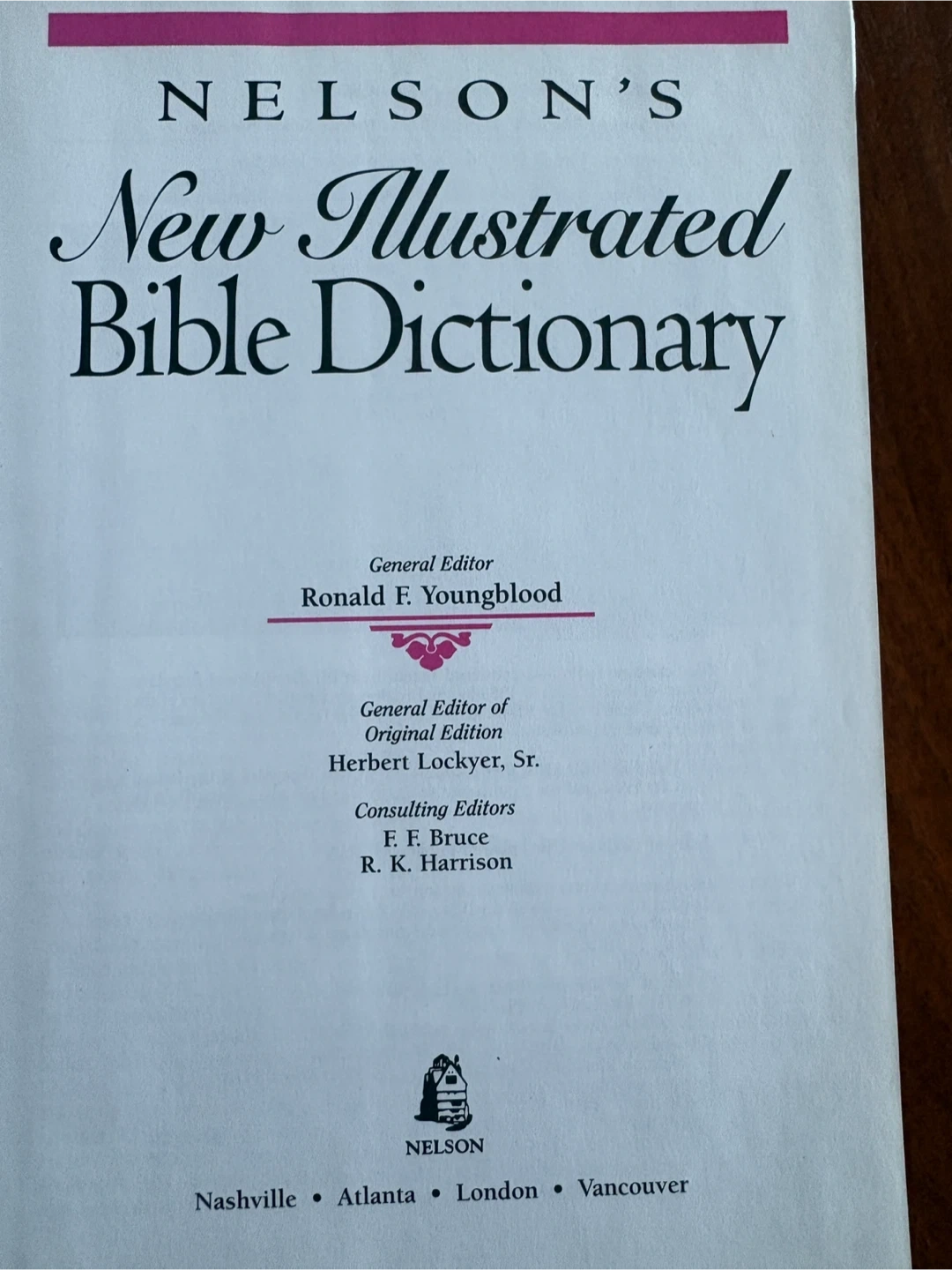 Nelson's New Illustrated Bible Dictionary, completely revised and updated edition. It features over 7,000 up-to-date entries and more than 500 full-color photographs and maps. Enlarged type size for ease of use.