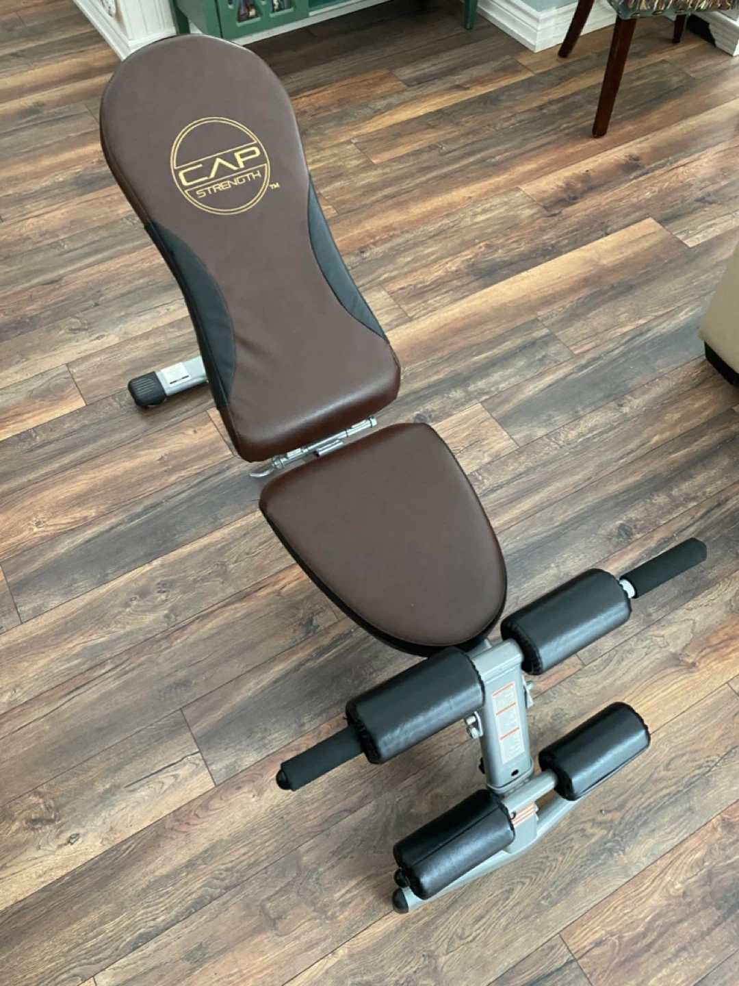Selling a CAP Strength adjustable bench in good condition. It's perfect for home workouts and can be adjusted to different angles for various exercises. A great addition to your home gym!