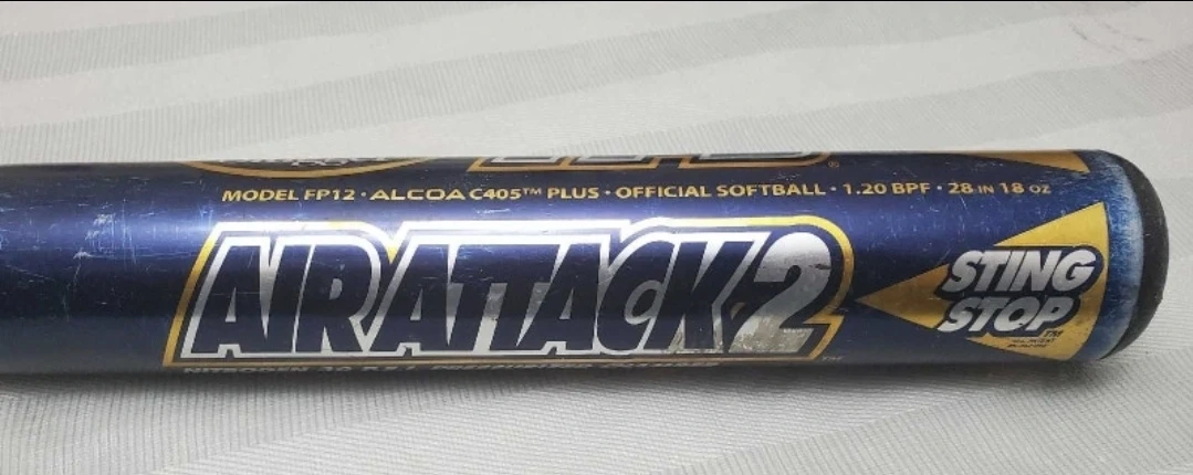 Here we have a Louisville slugger air attack 2 FP12 softball bat. Its Lisa Fernandez model 28 inches 18 ounce. please see pictures for exact condition.