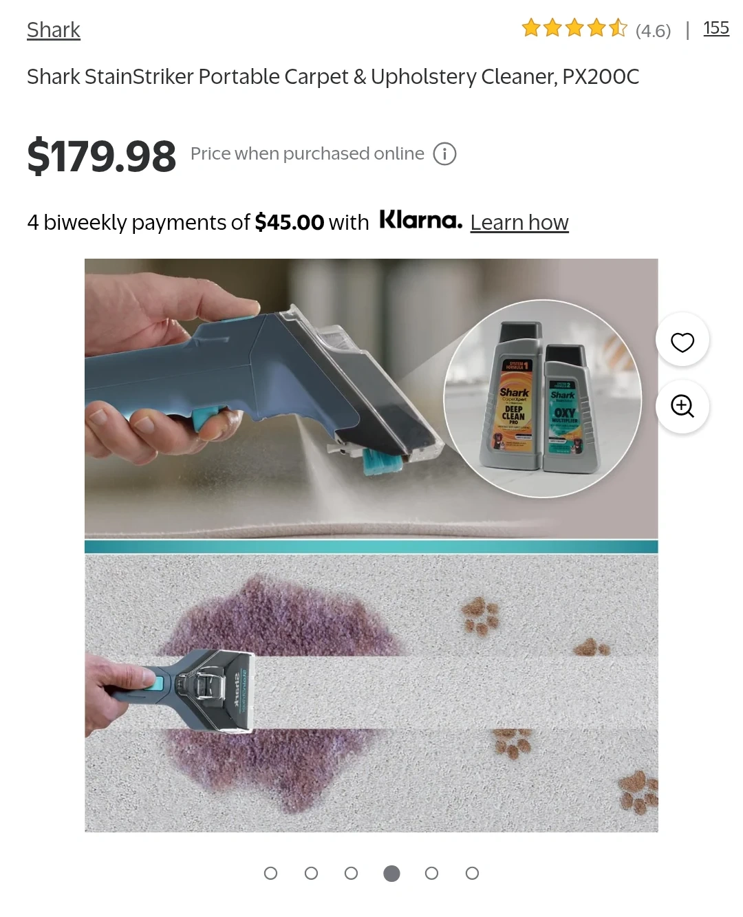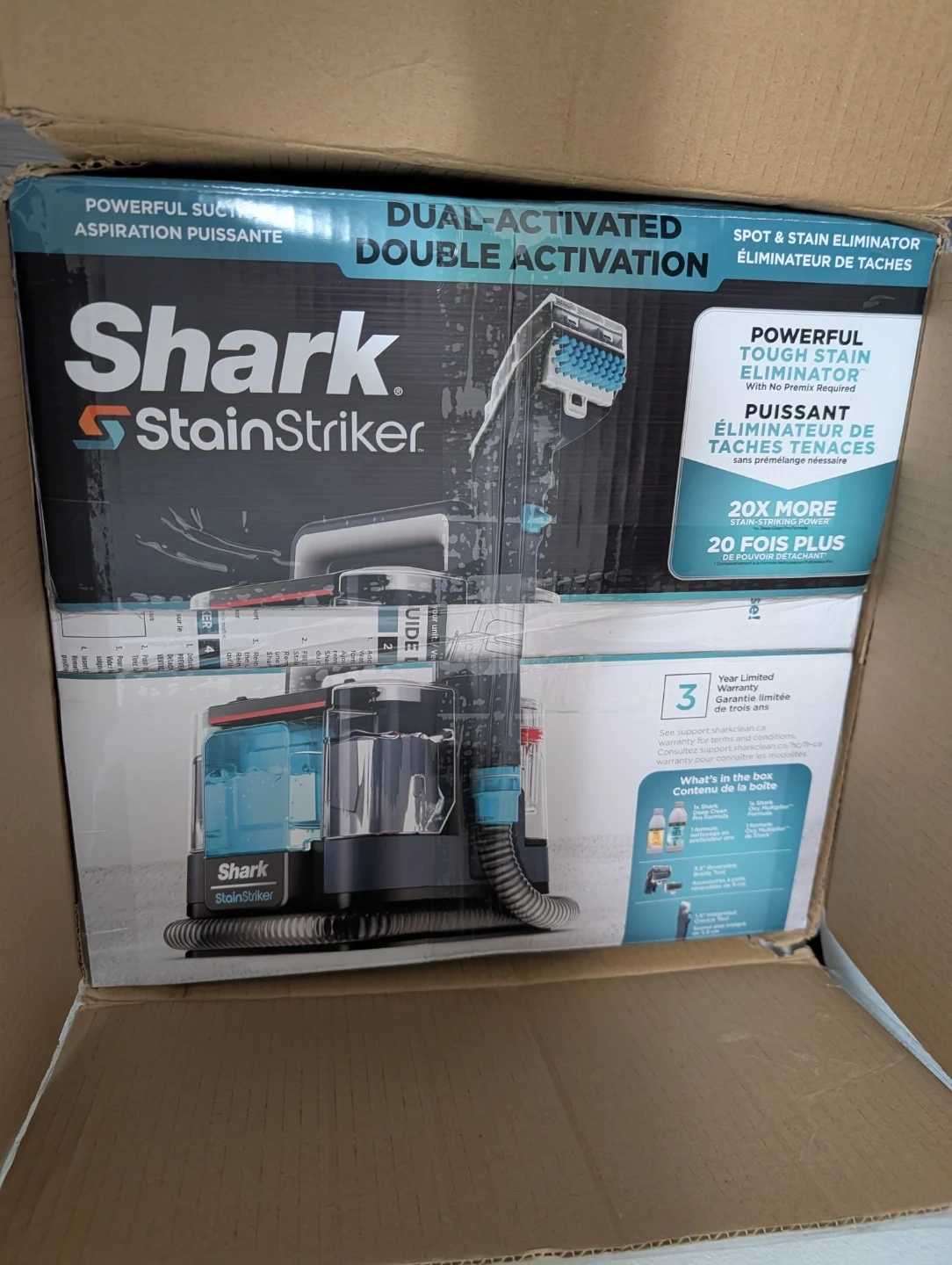 Shark StainStriker Portable Carpet & Upholstery Cleaner. Dual-activated, double activation for tough stains. Comes with cleaning solutions.