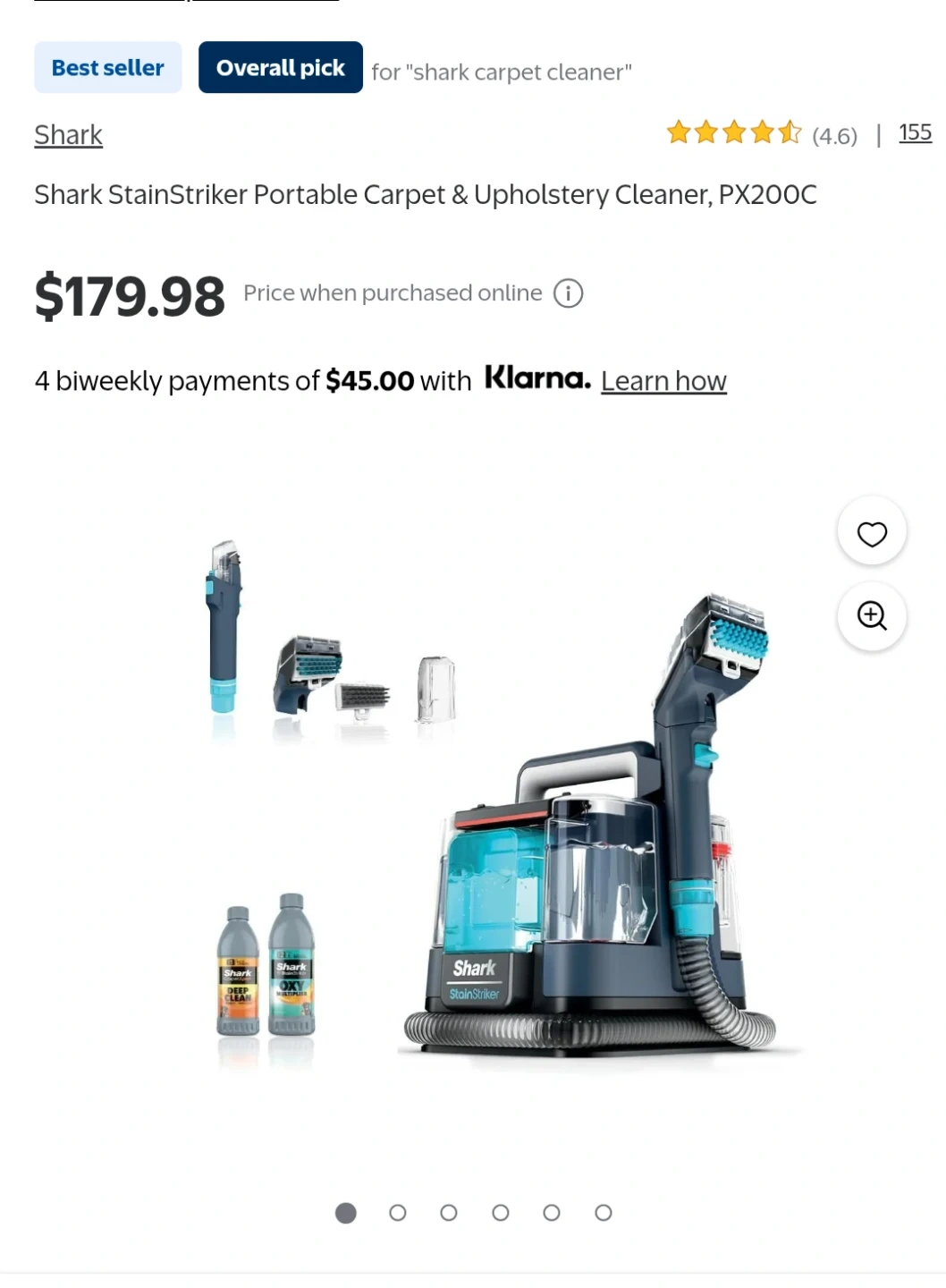 Shark StainStriker Portable Carpet & Upholstery Cleaner. Dual-activated, double activation for tough stains. Comes with cleaning solutions.
