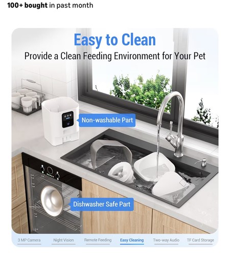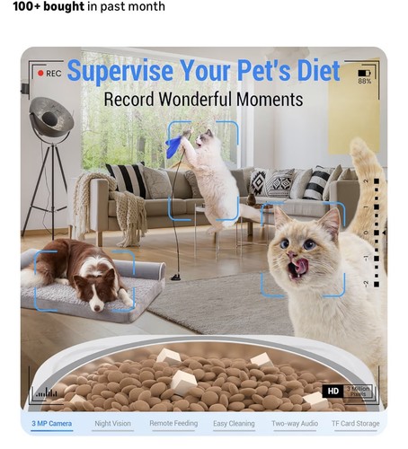 • 3MP Full HD camera with night vision – Check on your pet day or night, monitor how much food is left and record cute moments directly from the app.