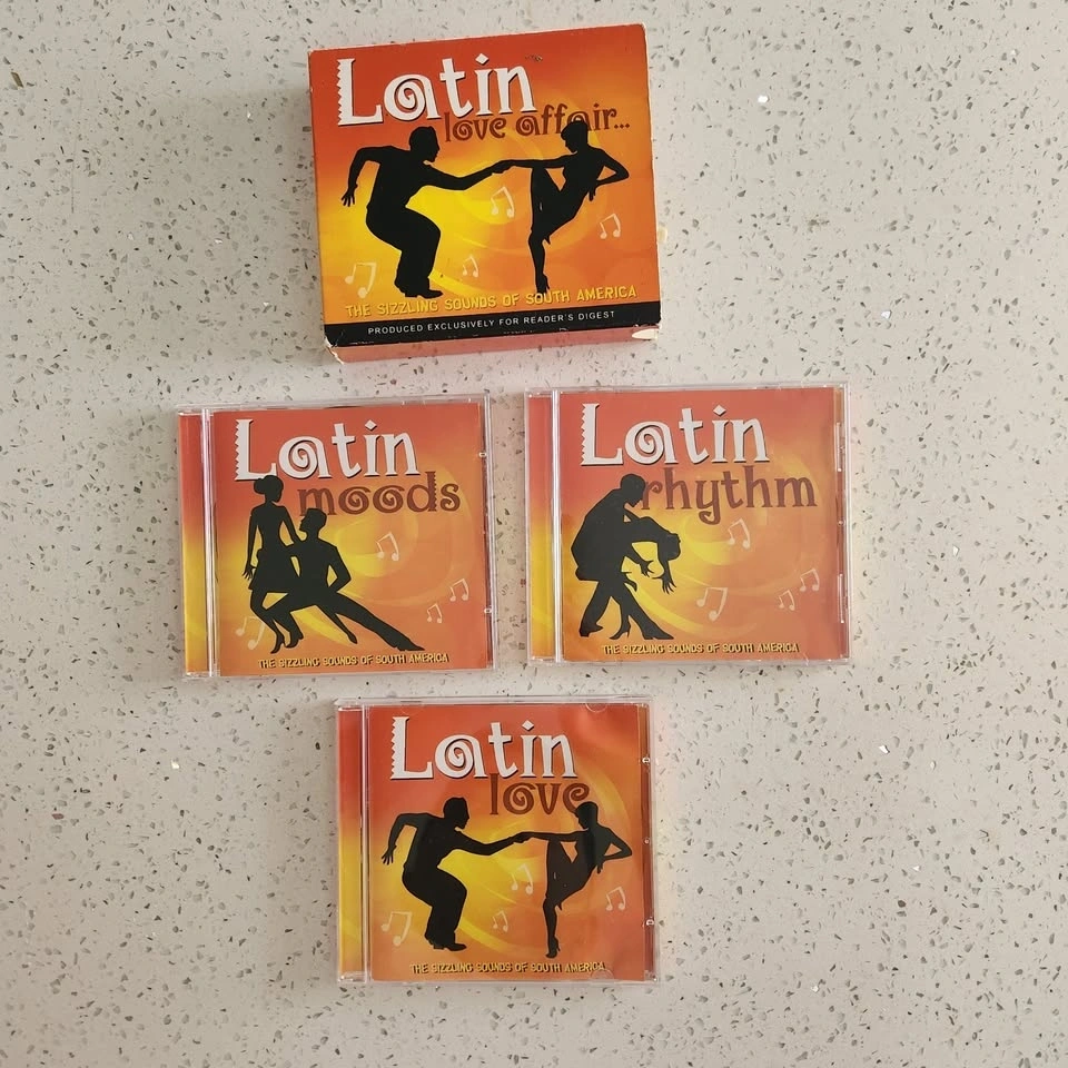 The Sizzling Sounds of South America 3-CD box set, produced by Reader’s Digest. The collection is divided into three themed discs: Latin Love, Latin Moods, and Latin Rhythm. Features popular Latin and Bossa Nova standards performed by artists such as The Sign Posters. Disc 1: Latin Love - "Corcovado (Quiet Nights)", "The Girl from Ipanema", "Besame Mucho", "Historia de Un Amor (History of Love)". Disc 2: Latin Moods - "Constant Rain", "Wave", "Summer Samba (So Nice)", "Guantanamera". Disc 3: Latin Rhythm - "Brazil", "Tequila", "Bamboleo", "Livin' la Vida Loca". Door/porch pickup in St. Catharines. Cash only.