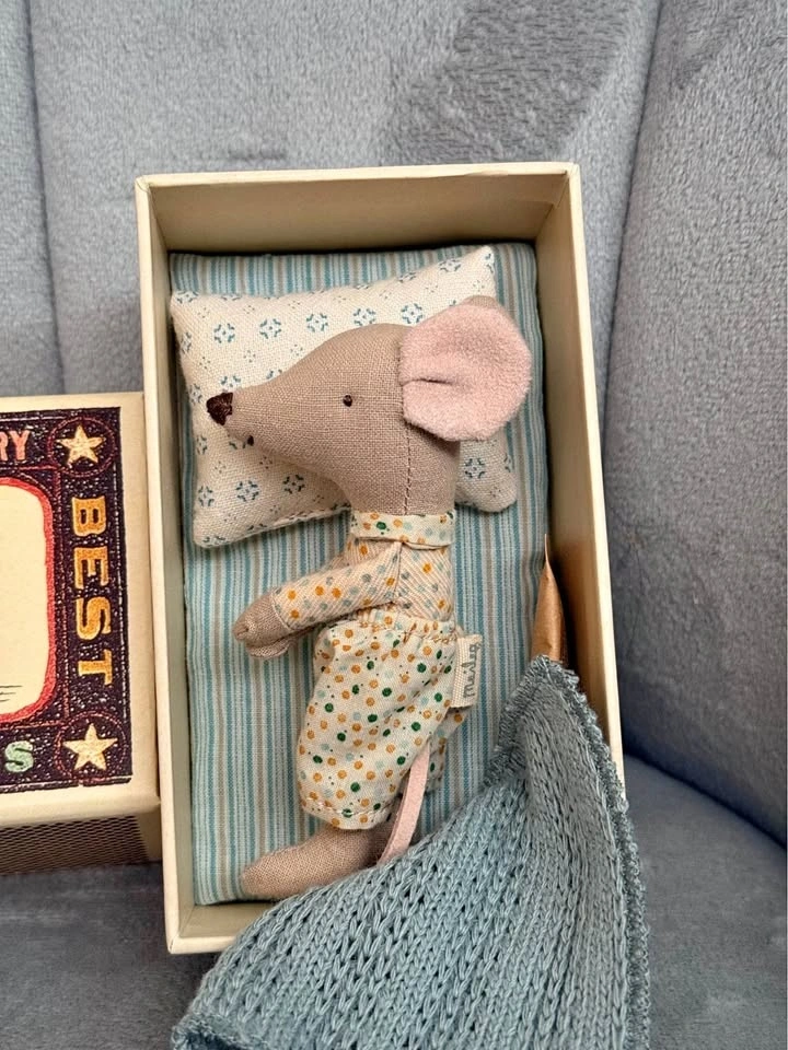 New Maileg little brother mouse in matchbox - polkadot pyjamas